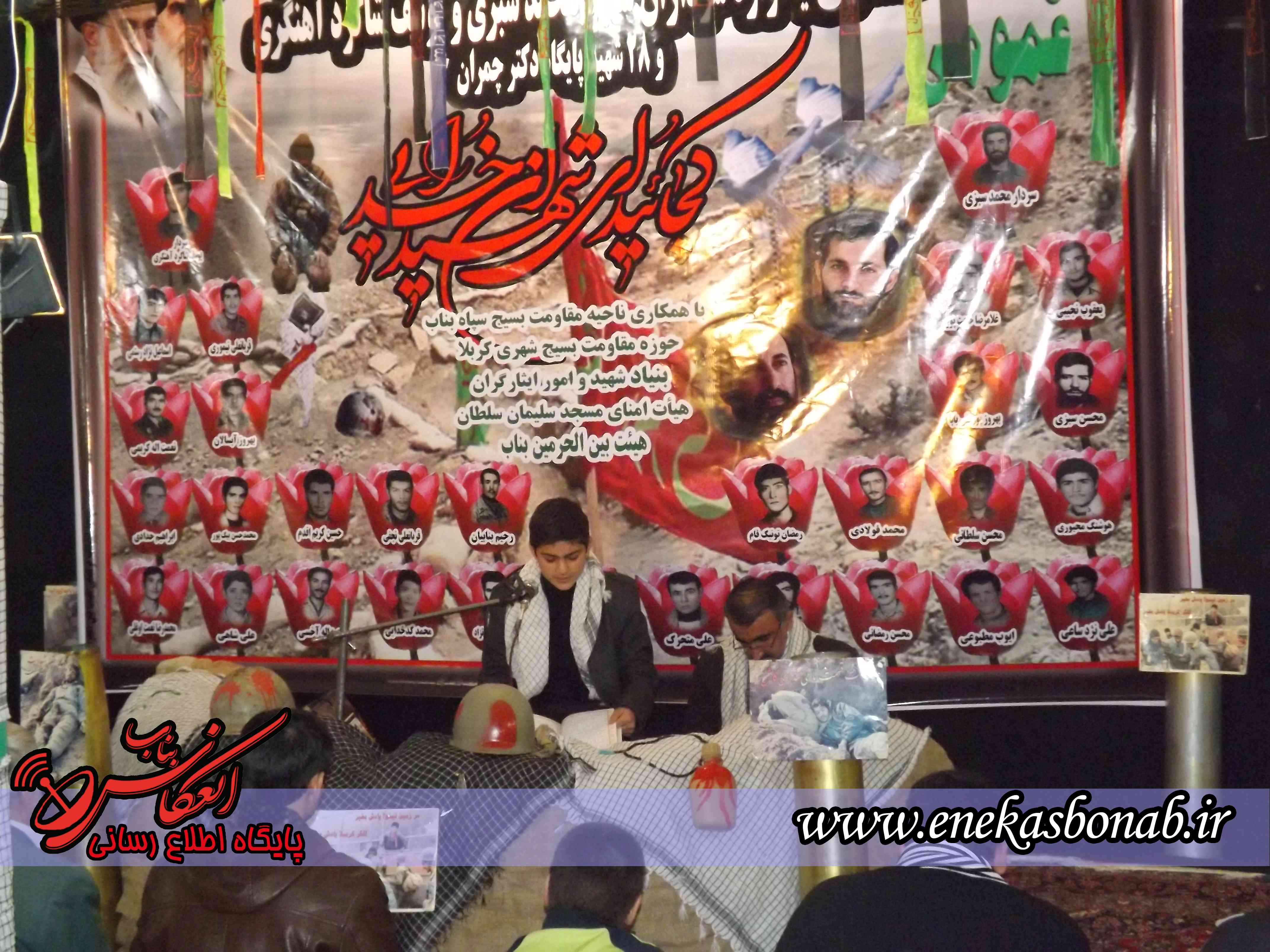 به گزارش خبرنگار انعکاس بناب، این مراسم معنوی با حضور رزمنده هشت سال جنگ تحمیلی جانباز ۷۰ درصد حاج جواد عباسعلی زاده و با همکاری بنیاد شهید و امور ایثارگران، هیئت بین الحرمین بناب، حوزه مقاومت بسیج شهری کربلا، هیئت امنای مسجد سلیمان سلطان و سپاه ناحیه بناب ترتیب یافته بود.