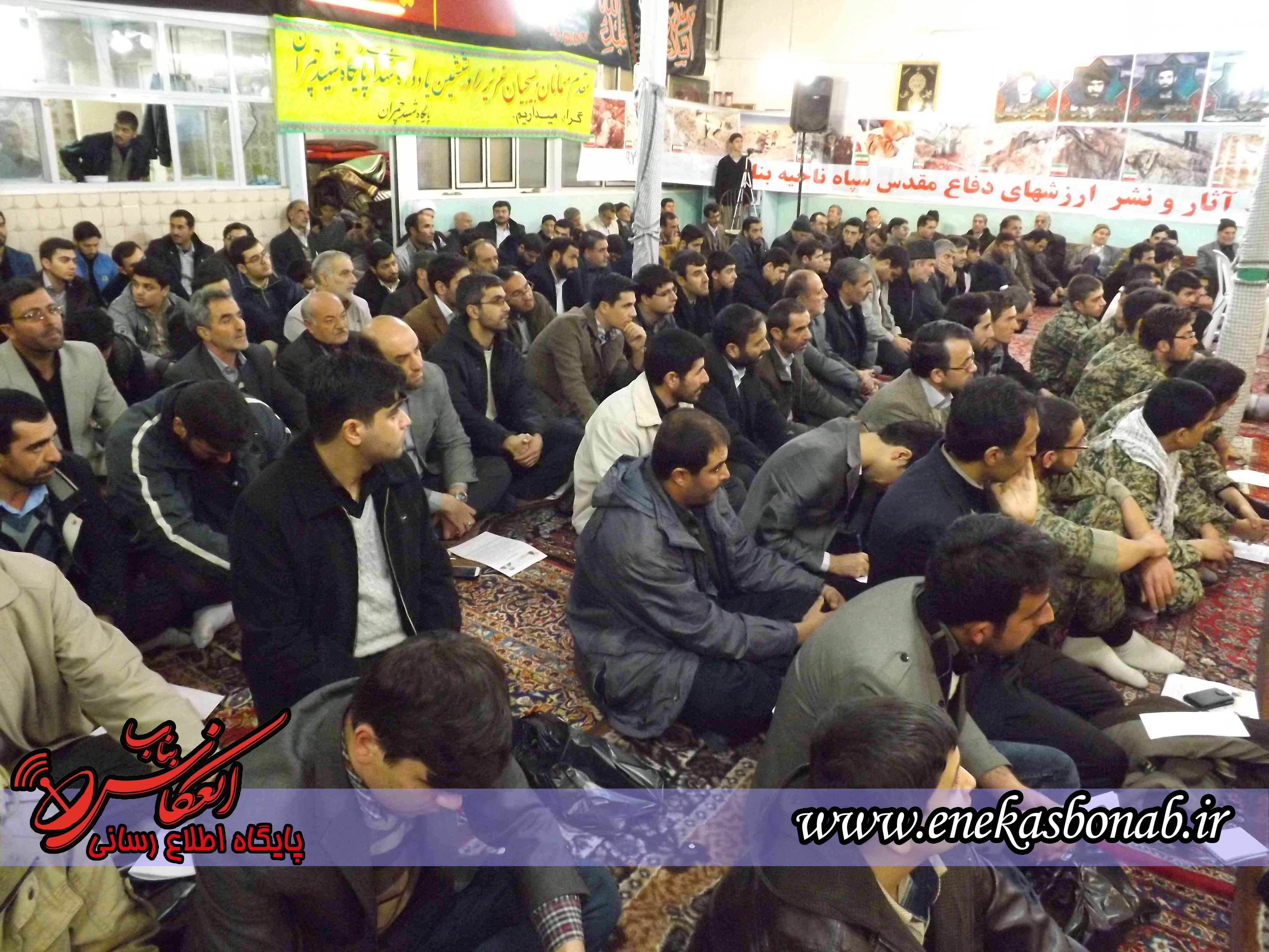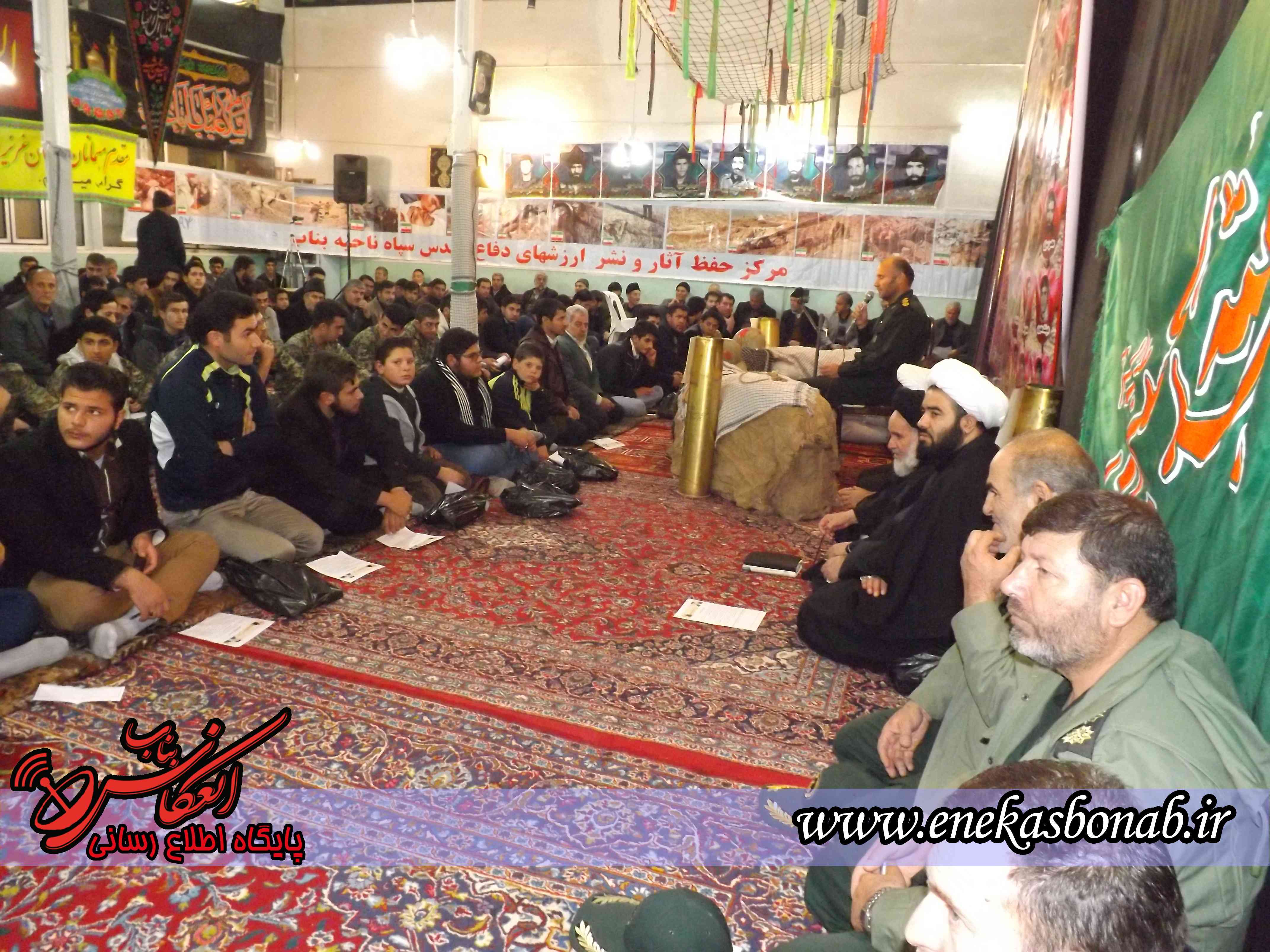 به گزارش خبرنگار انعکاس بناب، این مراسم معنوی با حضور رزمنده هشت سال جنگ تحمیلی جانباز ۷۰ درصد حاج جواد عباسعلی زاده و با همکاری بنیاد شهید و امور ایثارگران، هیئت بین الحرمین بناب، حوزه مقاومت بسیج شهری کربلا، هیئت امنای مسجد سلیمان سلطان و سپاه ناحیه بناب ترتیب یافته بود. گزارش تصویری/