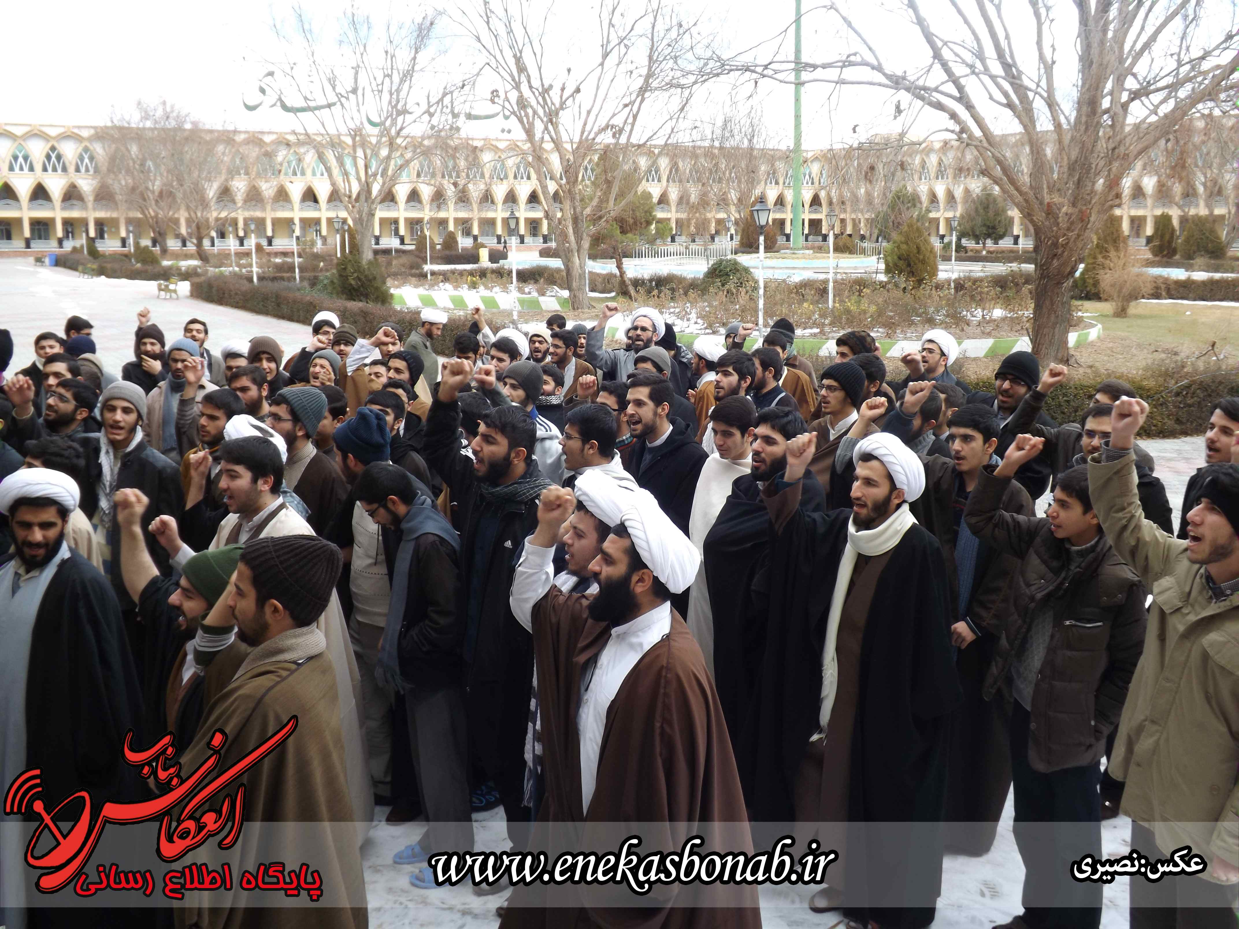 گفتنی است، طلاب حوزه علمیه بناب در این تجمع با سر دادن شعار مرگ بر آل سعود و امضای طومار، اعدام شیخ نمر توسط حکومت آل سعود را به شدت محکوم کردند.