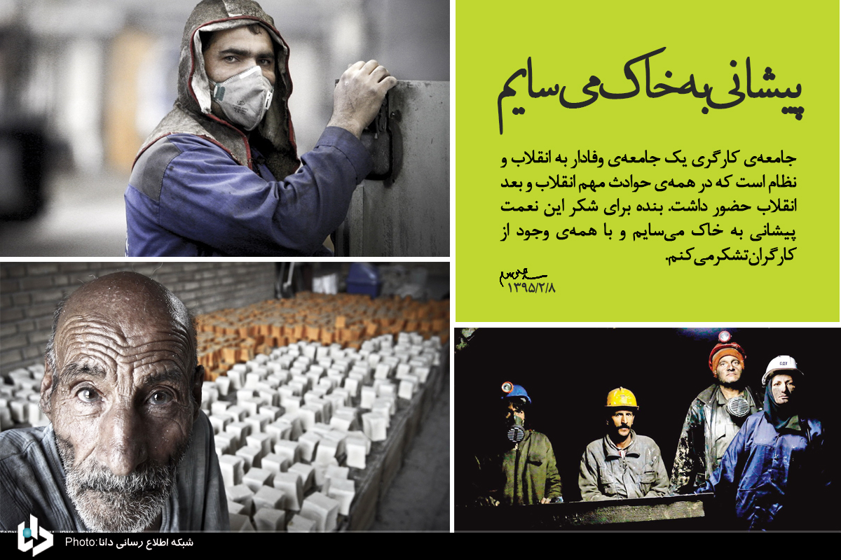 به گزارش انعکاس بناب به نقل از شبکه اطلاع رسانی راه دانا؛ به مناسبت هفتهی کارگر، هزاران نفر از کارگران سراسر کشور با حضور در حسینیهی امام خمینی رحمهالله با حضرت آیتالله خامنهای رهبر انقلاب اسلامی دیدار کردبخشی از بیانات مقام معظم رهبری در قالب پوستر از نگاتان میگذرد. انتهای پیام/ش