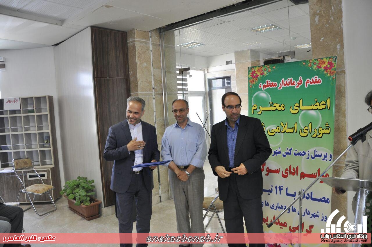 در این مراسم فرماندار بناب و رحیم زاده رئیس شورای اسلامی در سخنانی بر لزوم خدمت صادقانه به مردم تاکید کردند.