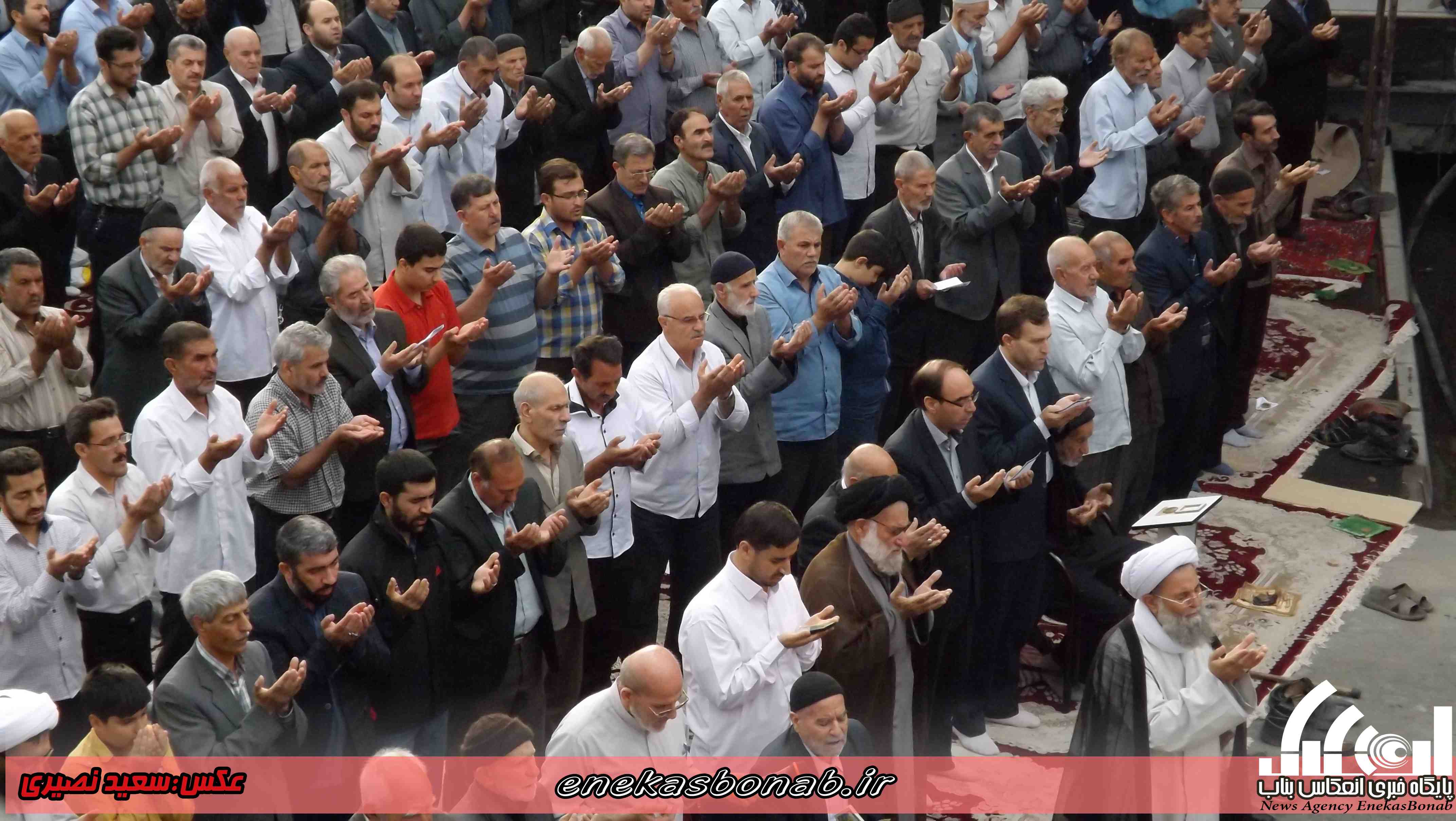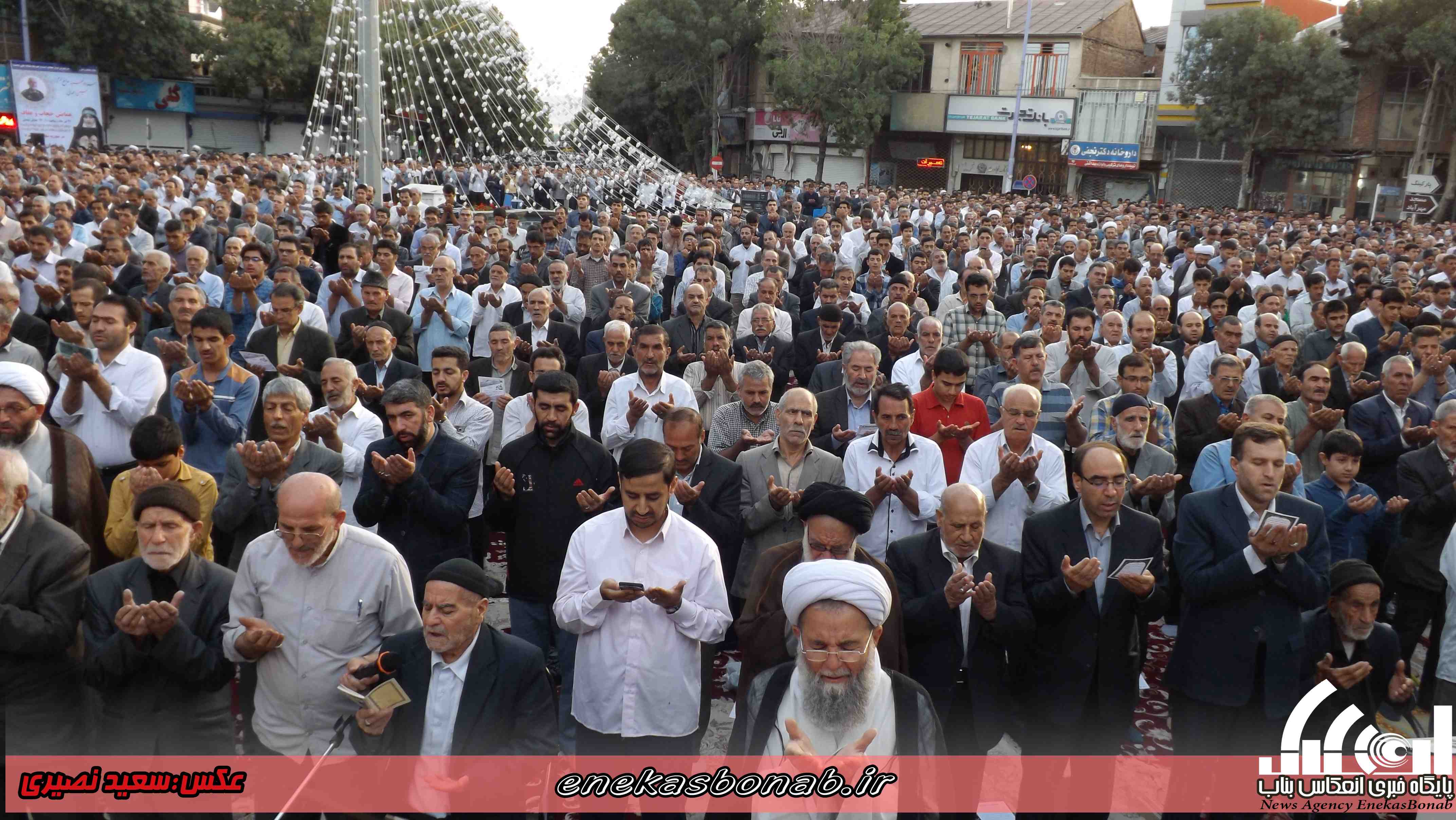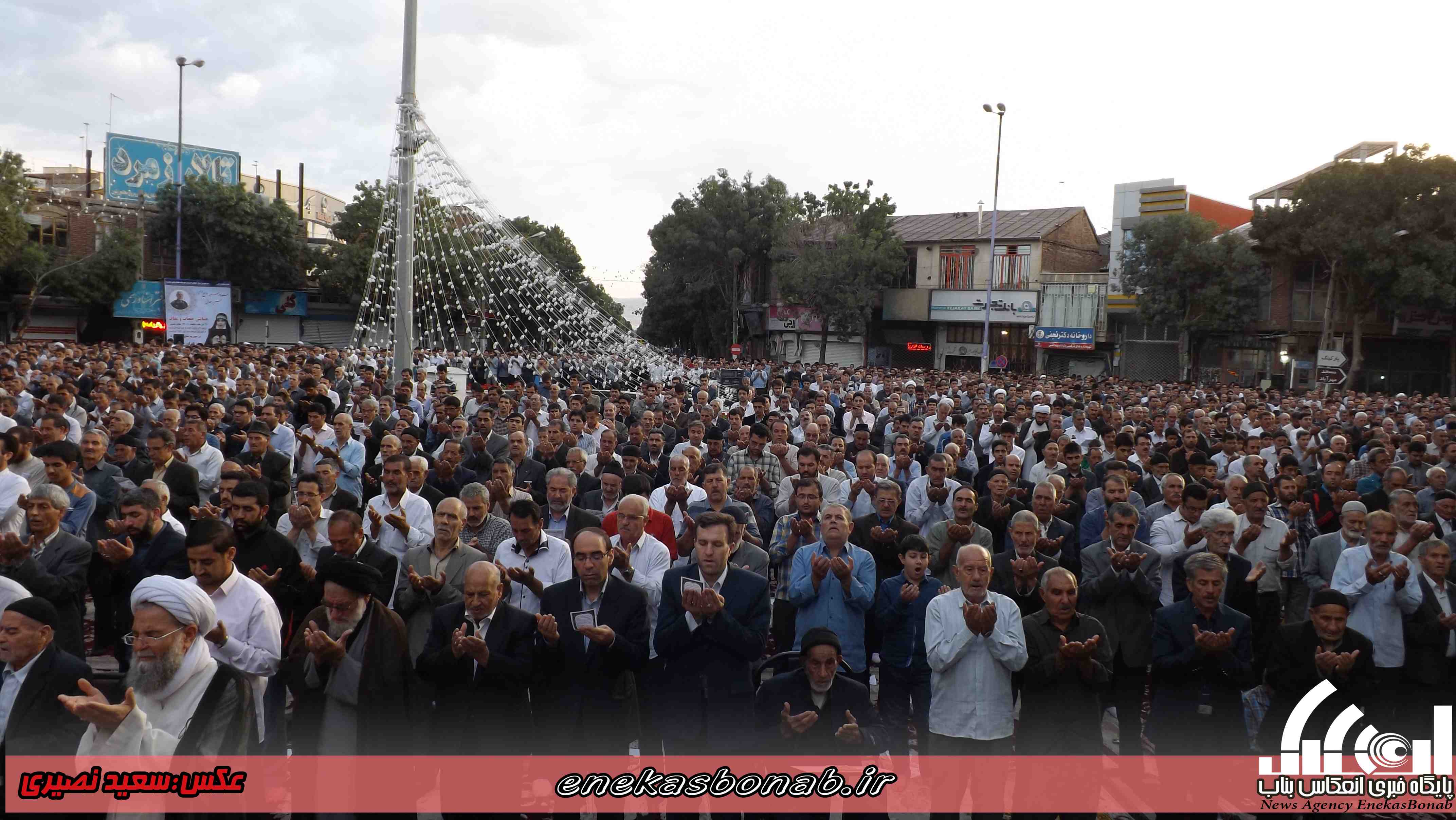 به گزارش انعکاس بناب، مردم مومن و روزه دار شهرستان بناب پس از یک ماه روزه داری و تزکیه نفس صبح امروز چهارشنبه ۱۶ تیرماه ۹۵ با حضور در میدان مرکزی این شهرستان در صفوف به هم پیوسته در ساعت ۷ صبح نماز عید سعید فطر را به امامت امام جمعه شهرستان بناب برگزار کردند.