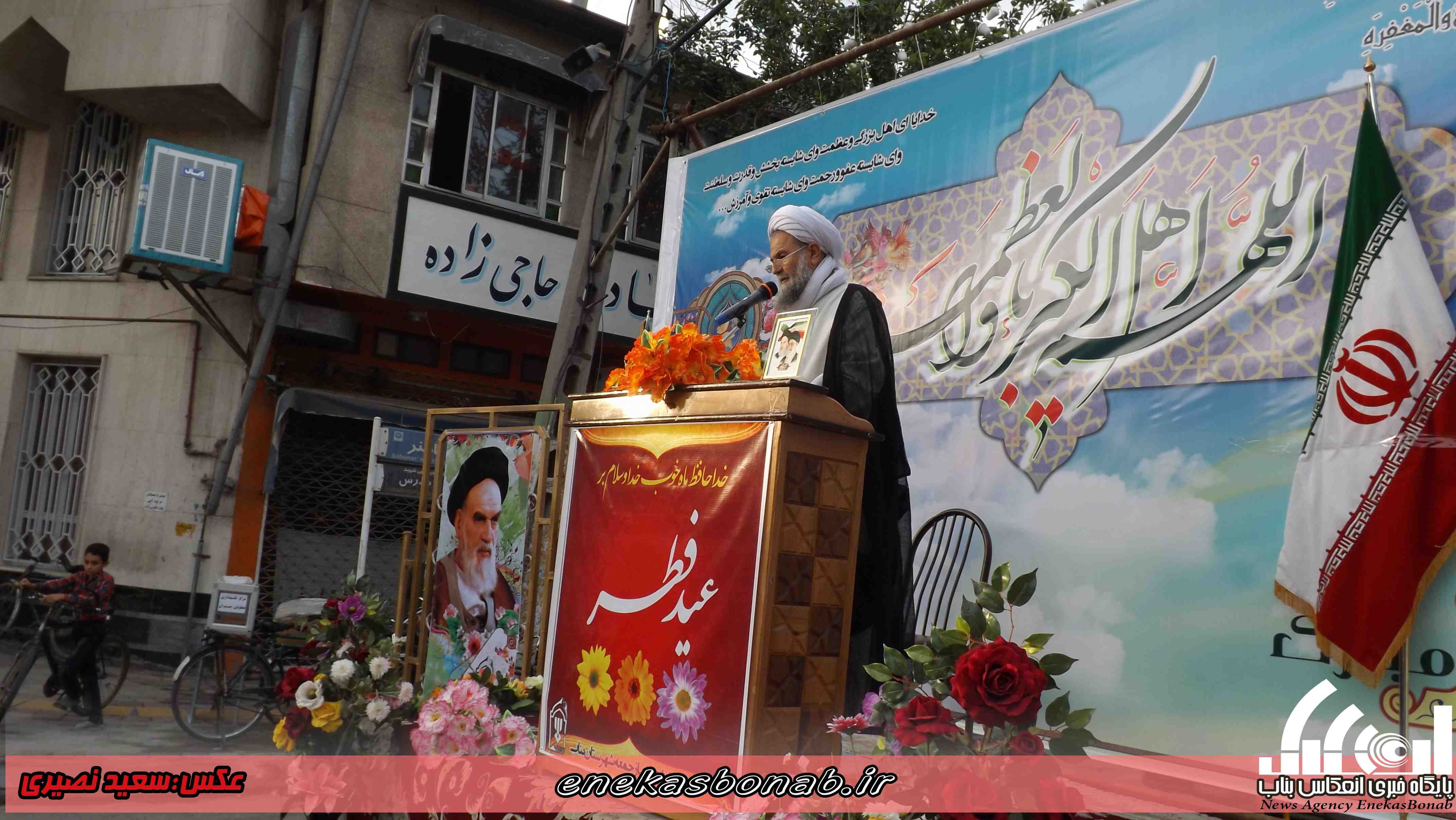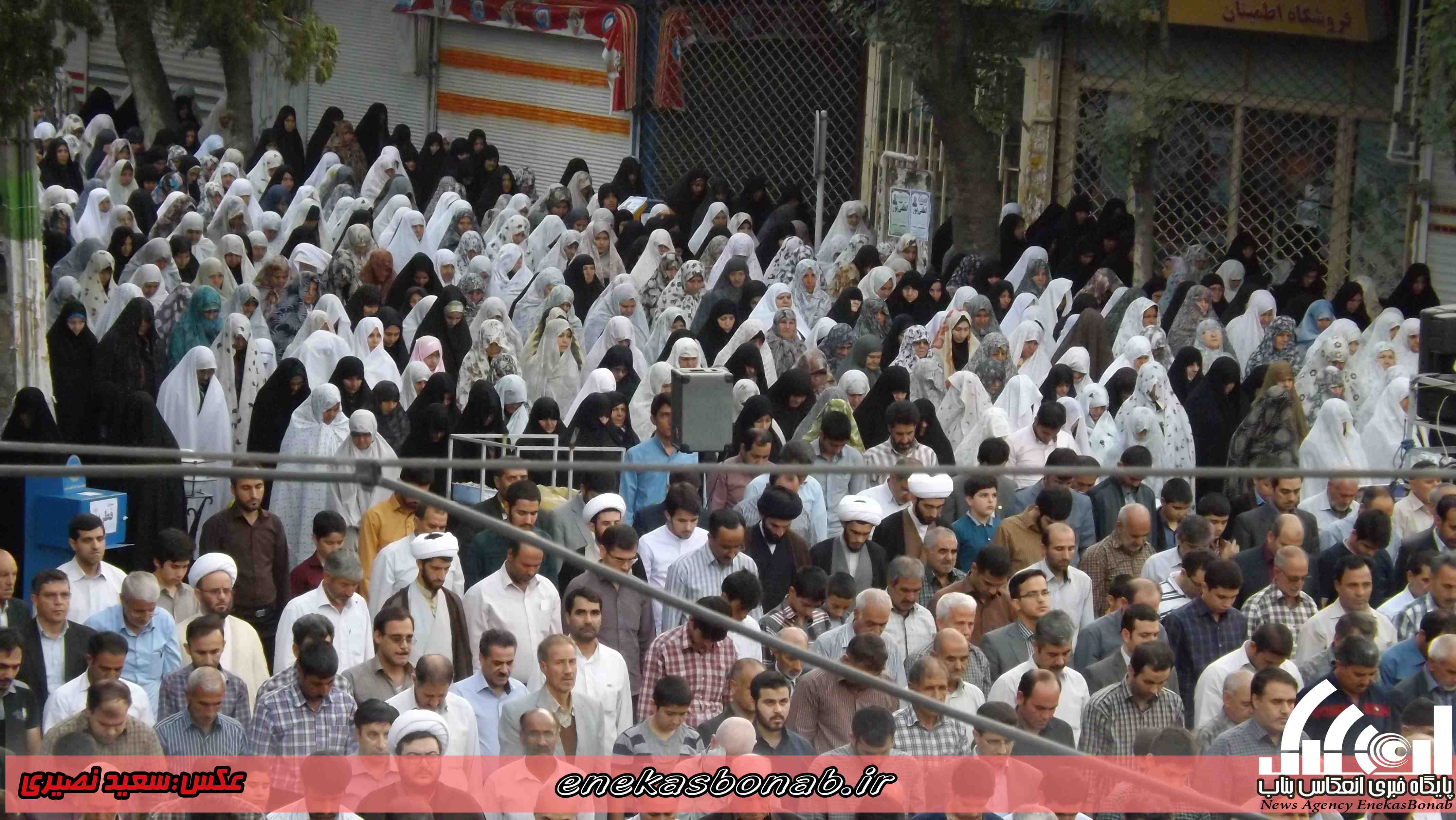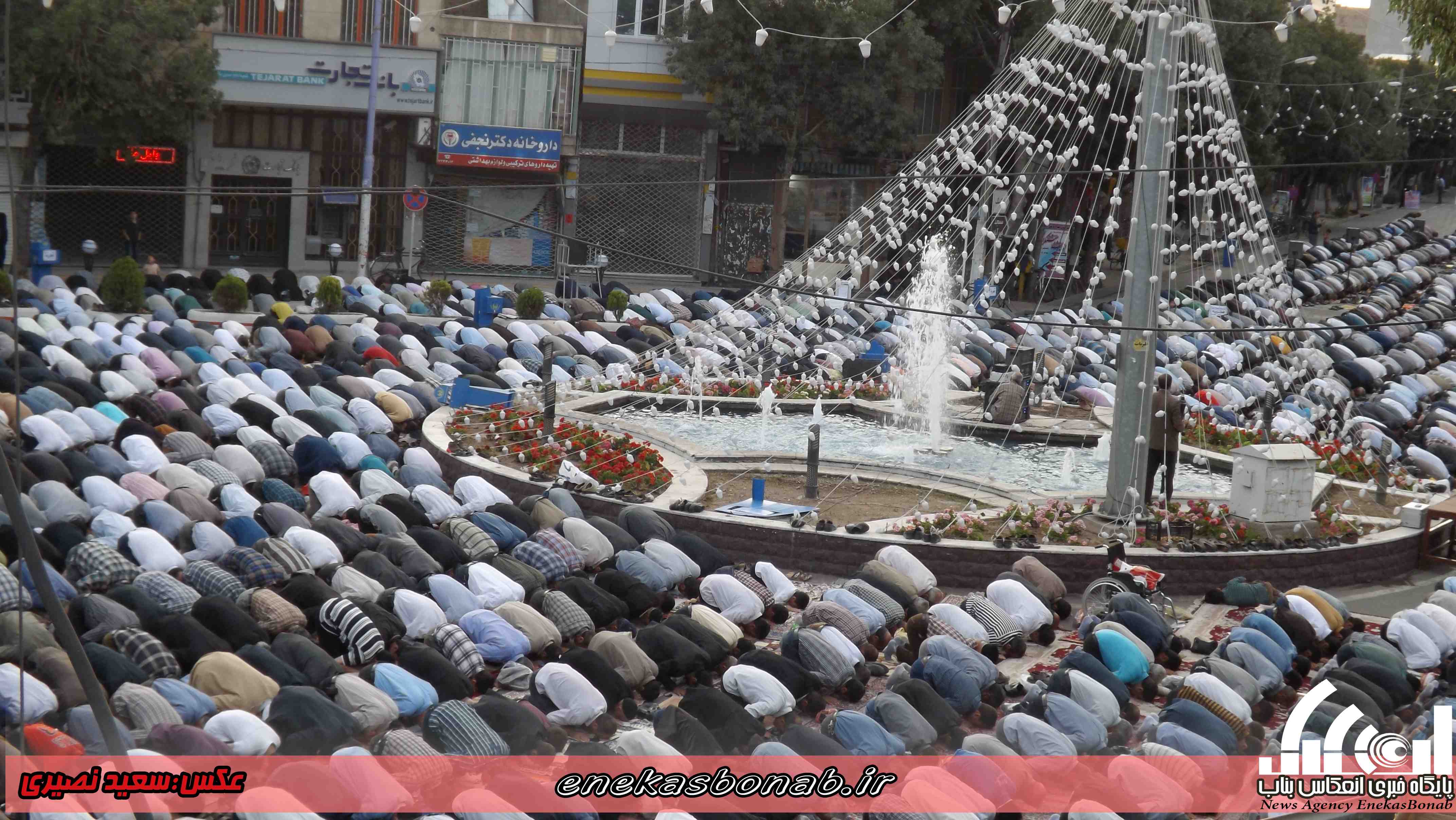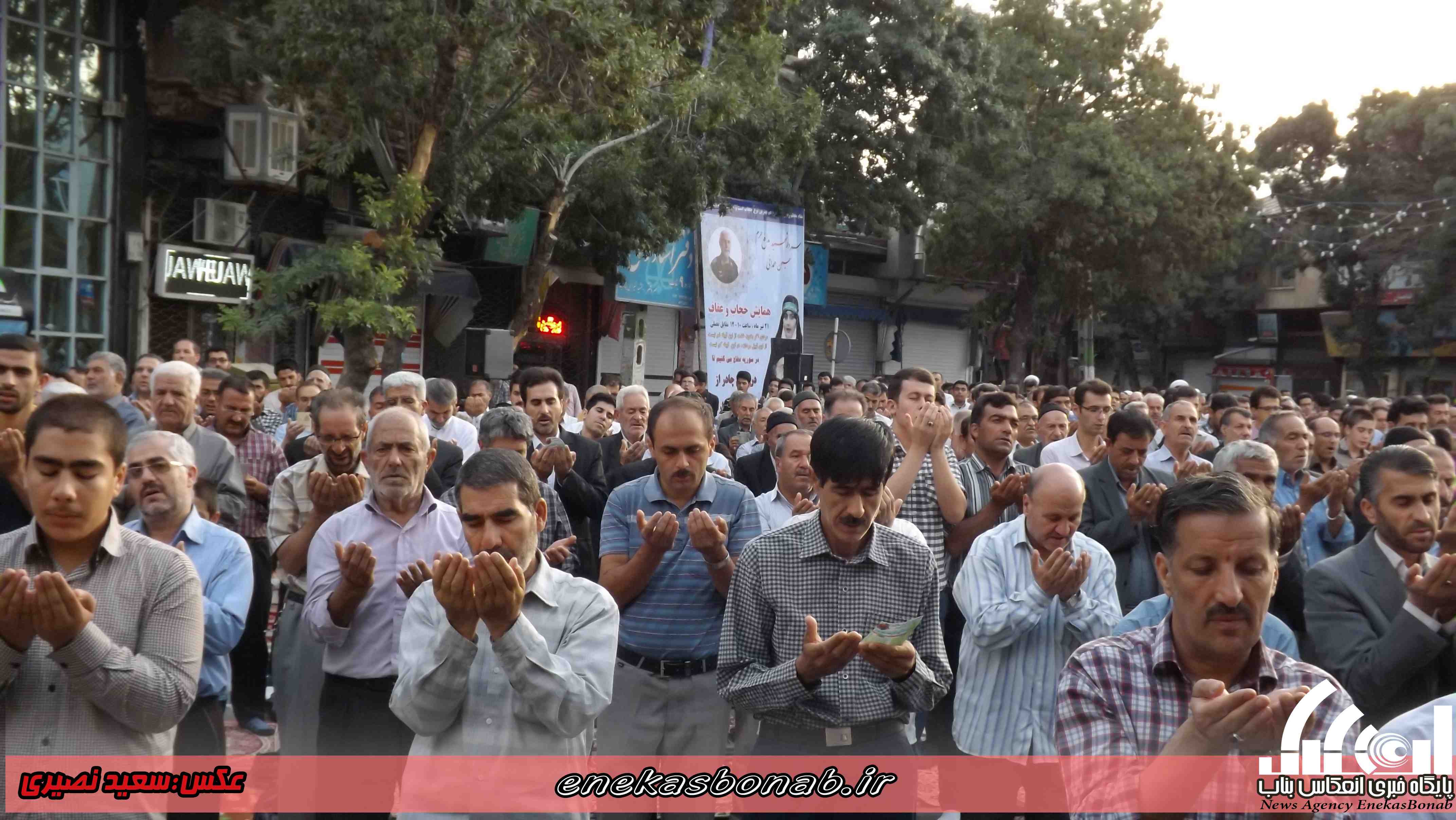 به گزارش انعکاس بناب، مردم مومن و روزه دار شهرستان بناب پس از یک ماه روزه داری و تزکیه نفس صبح امروز چهارشنبه ۱۶ تیرماه ۹۵ با حضور در میدان مرکزی این شهرستان در صفوف به هم پیوسته در ساعت ۷ صبح نماز عید سعید فطر را به امامت امام جمعه شهرستان بناب برگزار کردند.