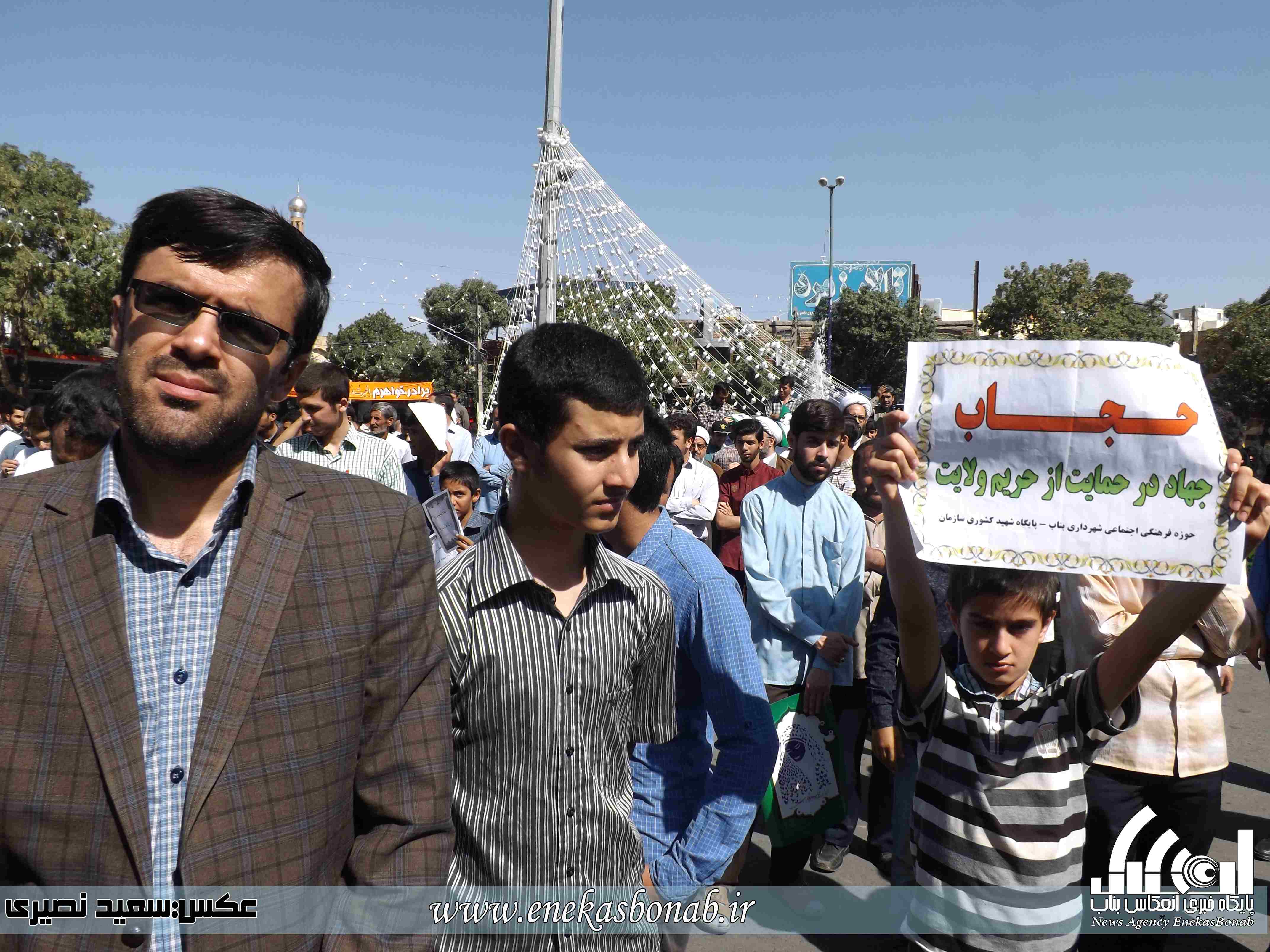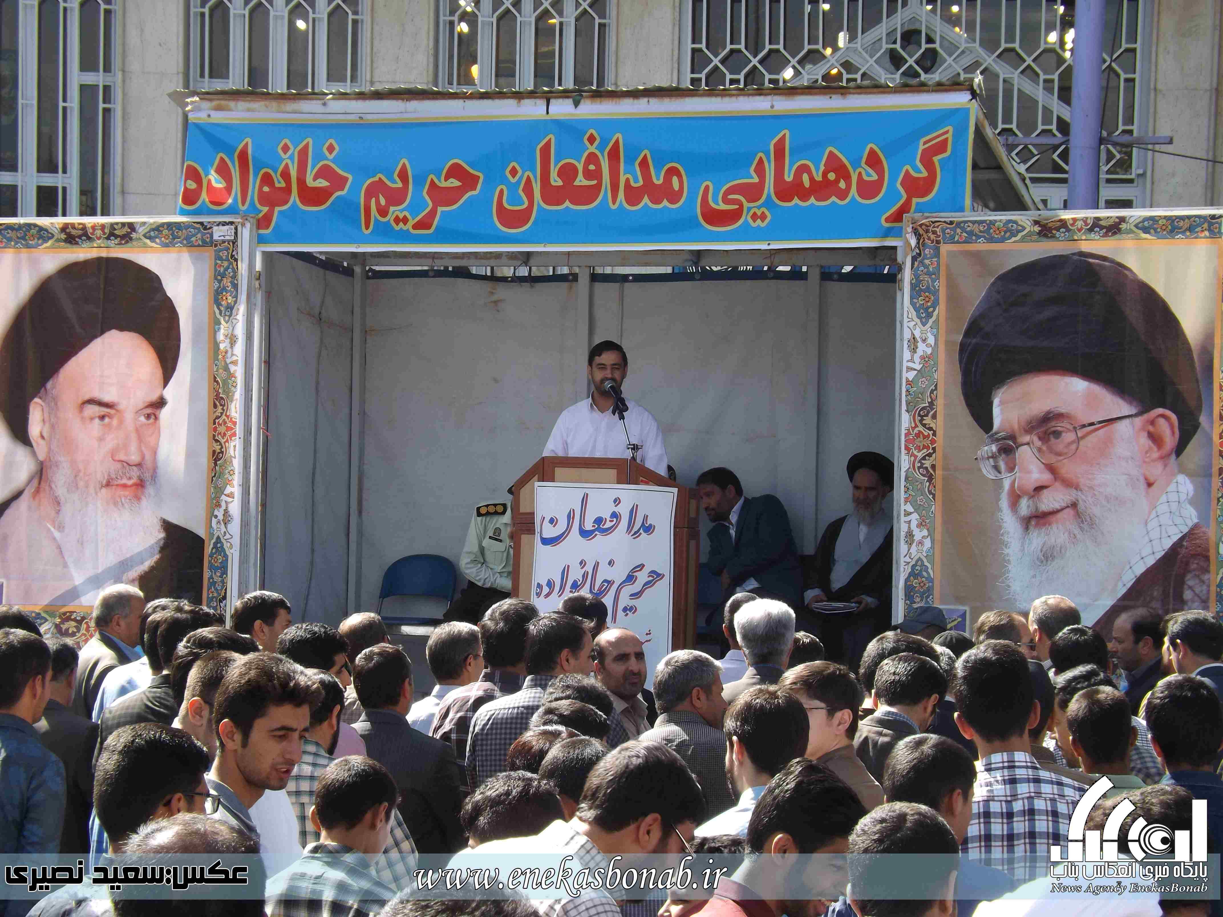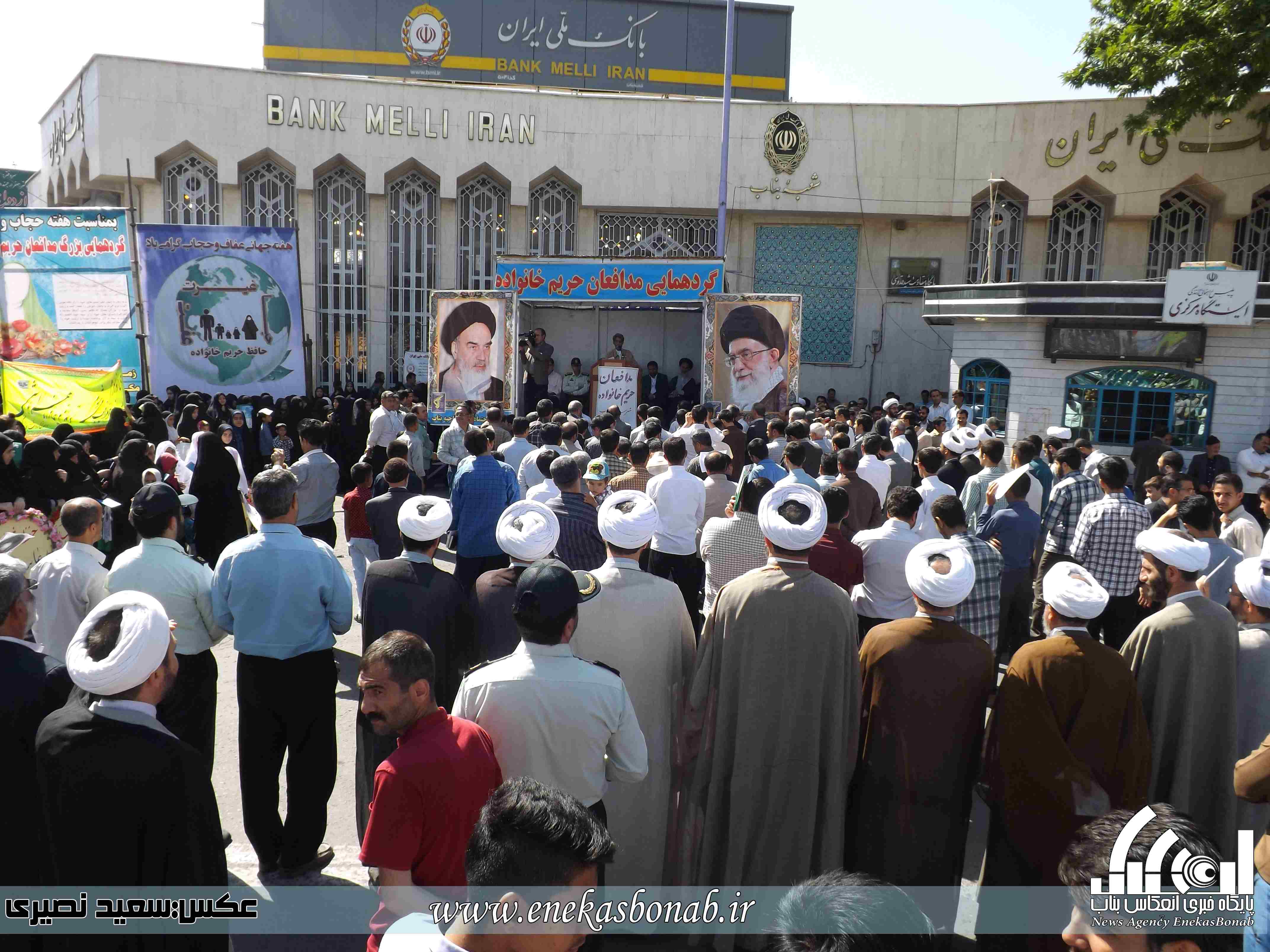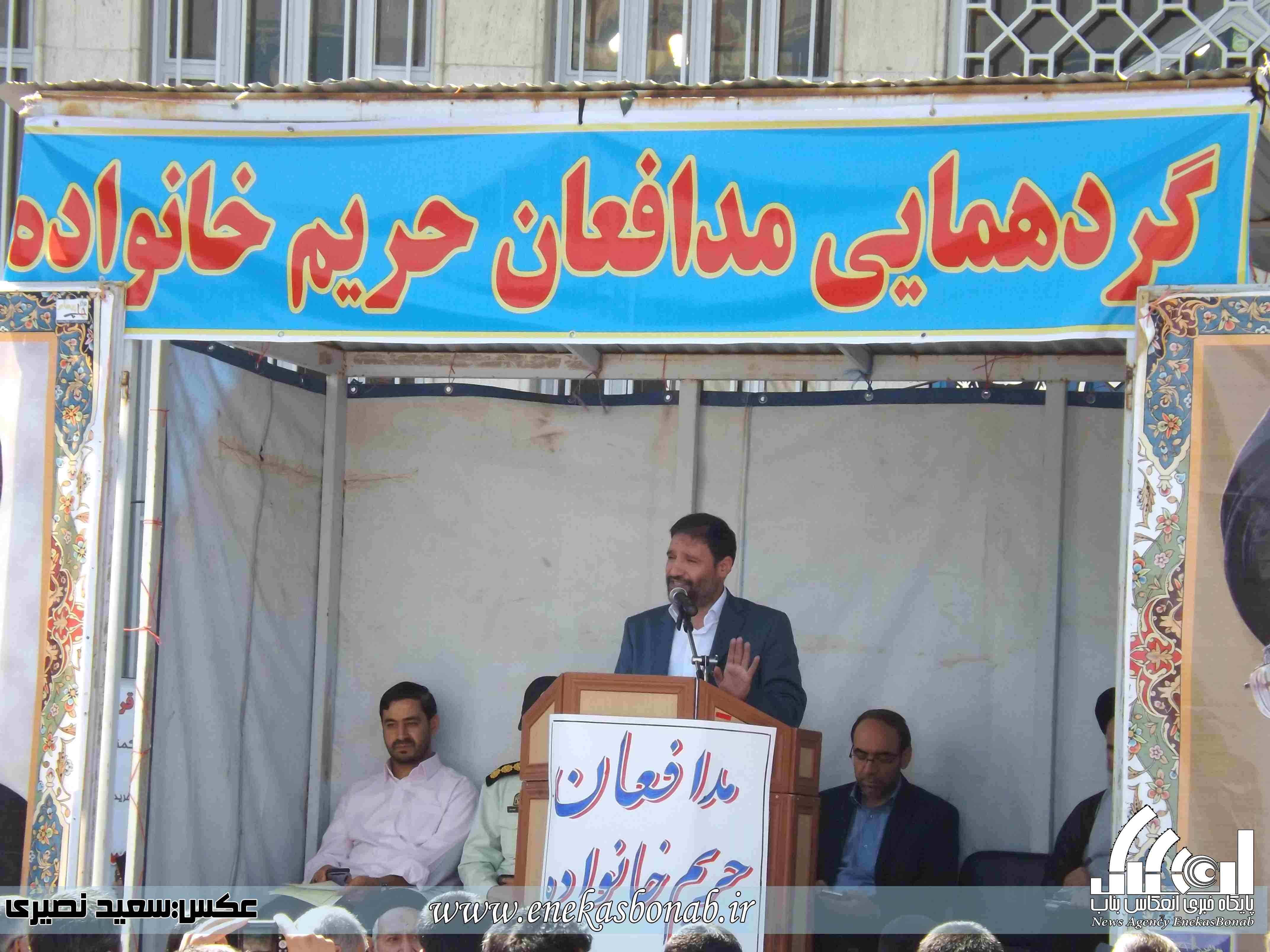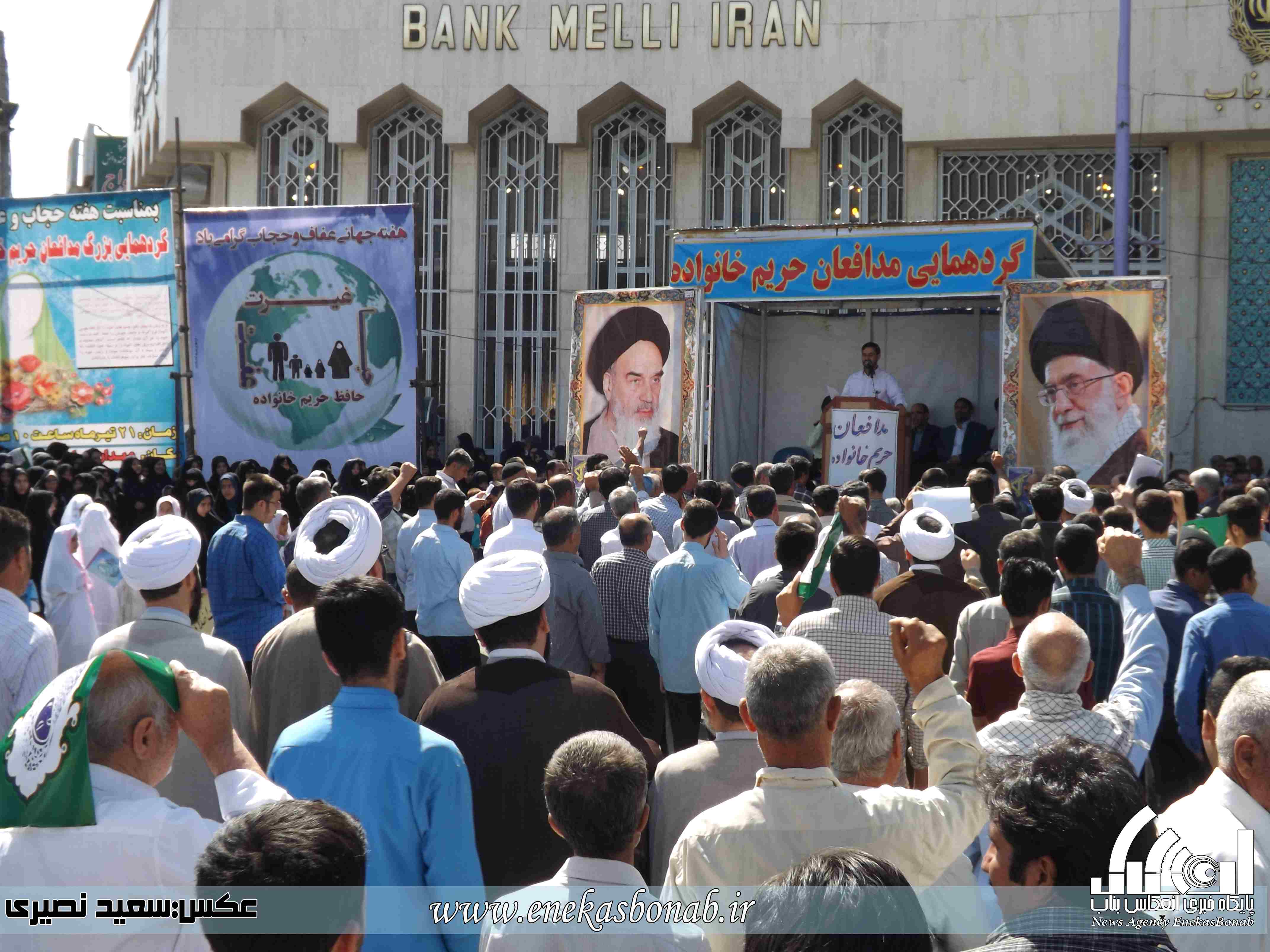 به گزارش خبرنگار انعکاس بناب، این اجتماع بزرگ همزمان با سراسر کشور در هوای گرم تابستان در میدان امام حسین(ع) با حضور گرم خانواده های بنابی در حالی برگزار شد که شرکت کنندگان با سر دادن شعارهایی، خود را مدافع حریم خانواده خود عنوان کردند.