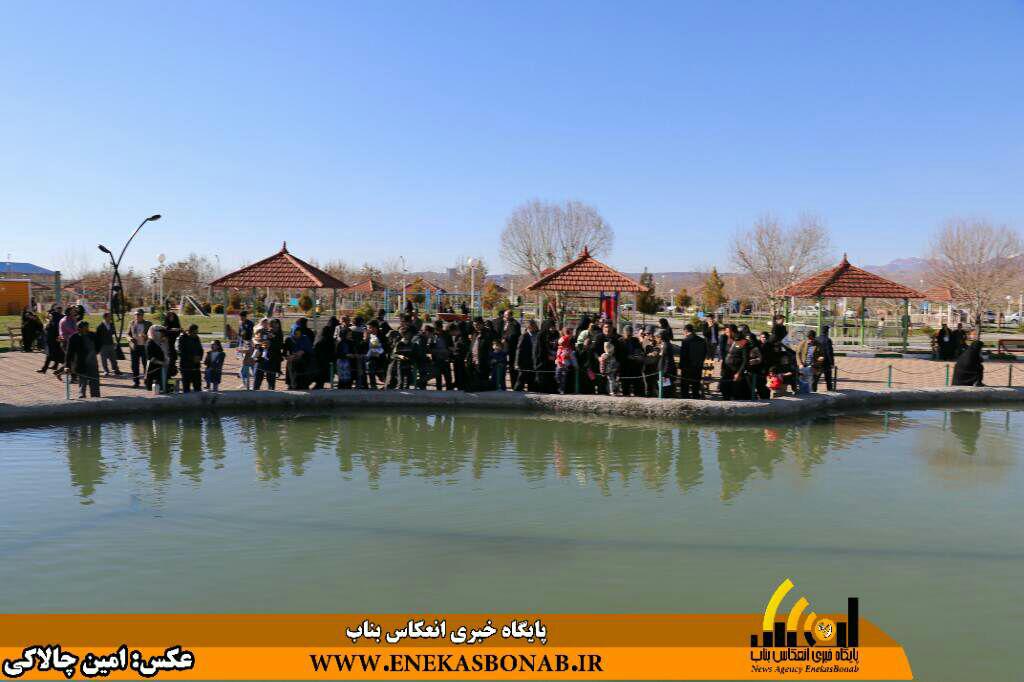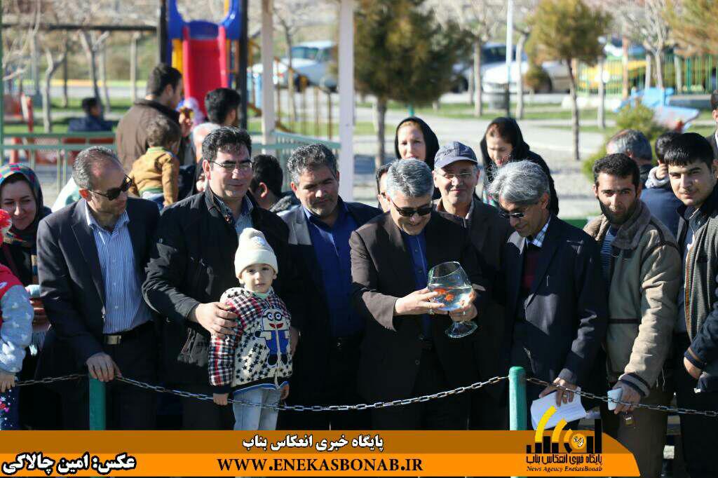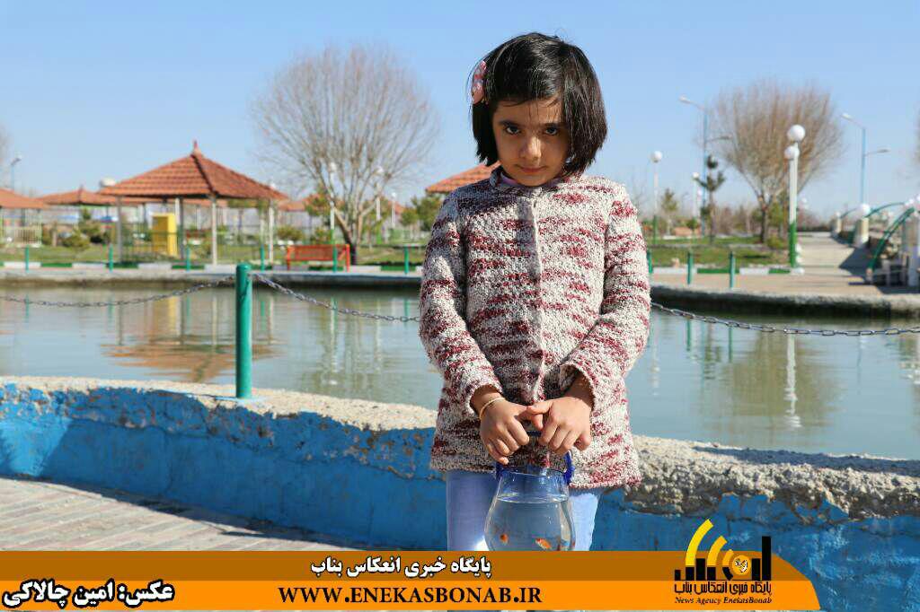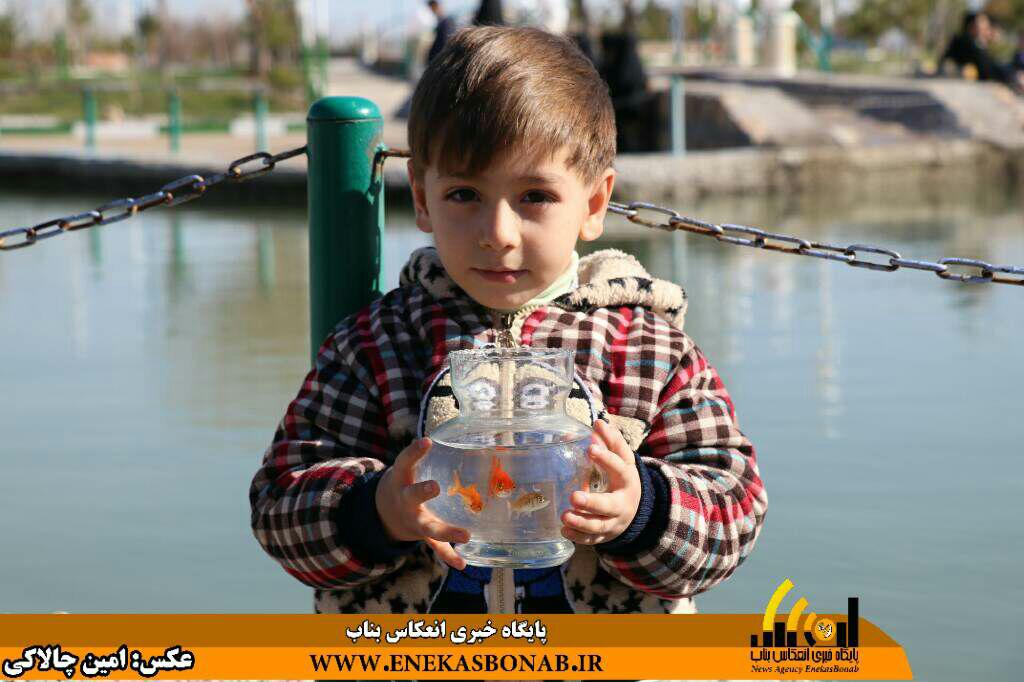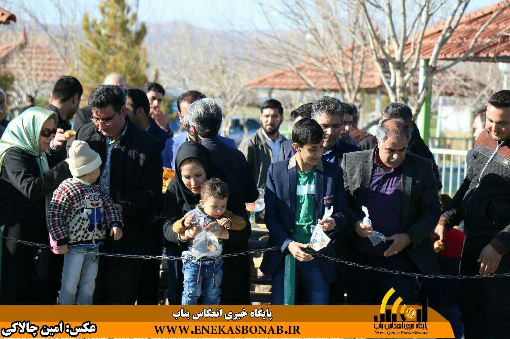ماهی های عید با حضور شهردار بناب و رئیس اداره میراث فرهنگی، توسط شهروندان به حوض بزرگ این پارک رهاسازی شدند.