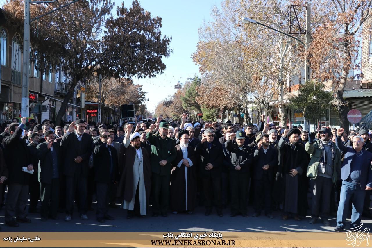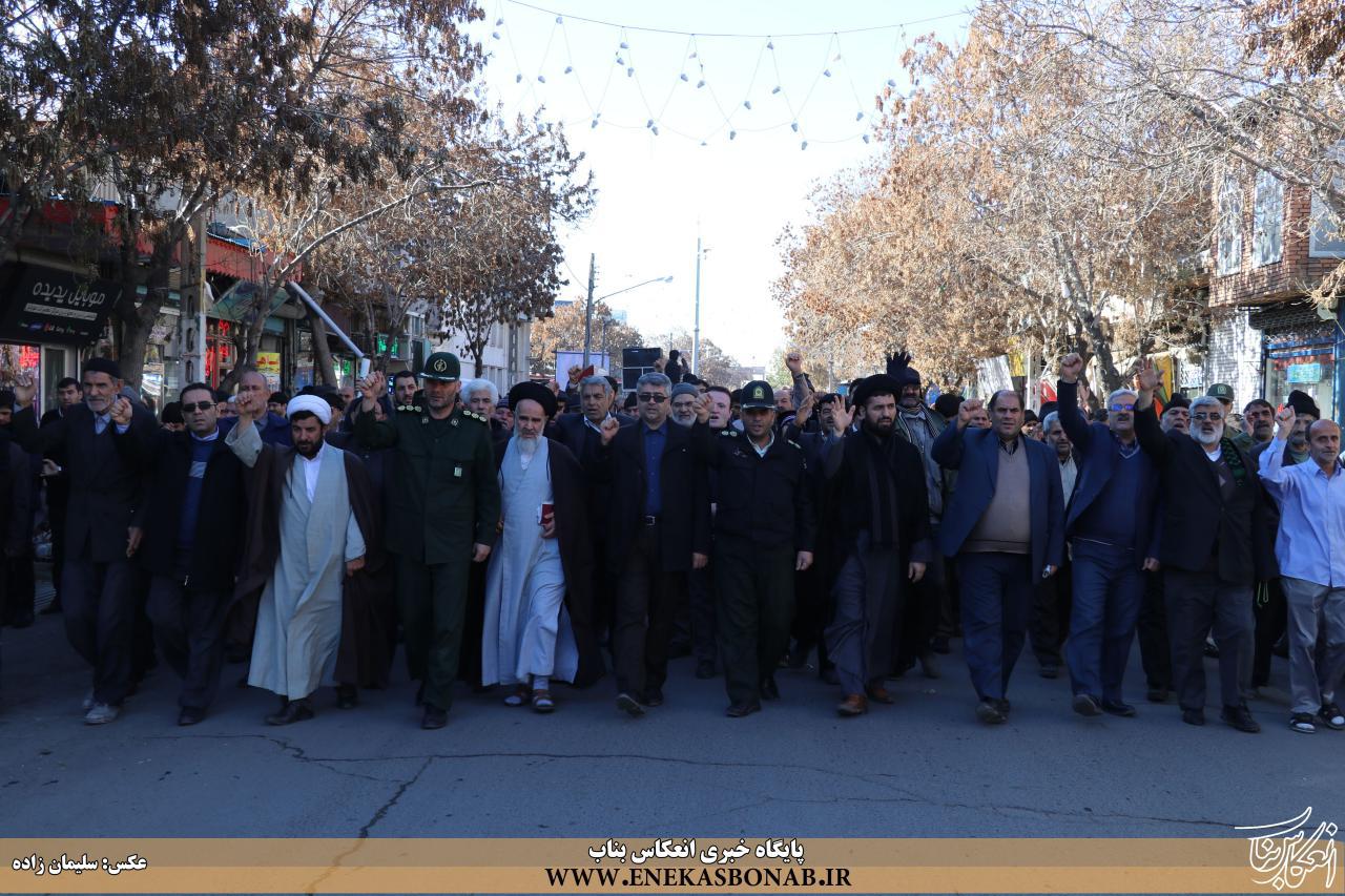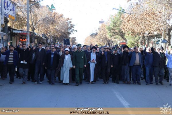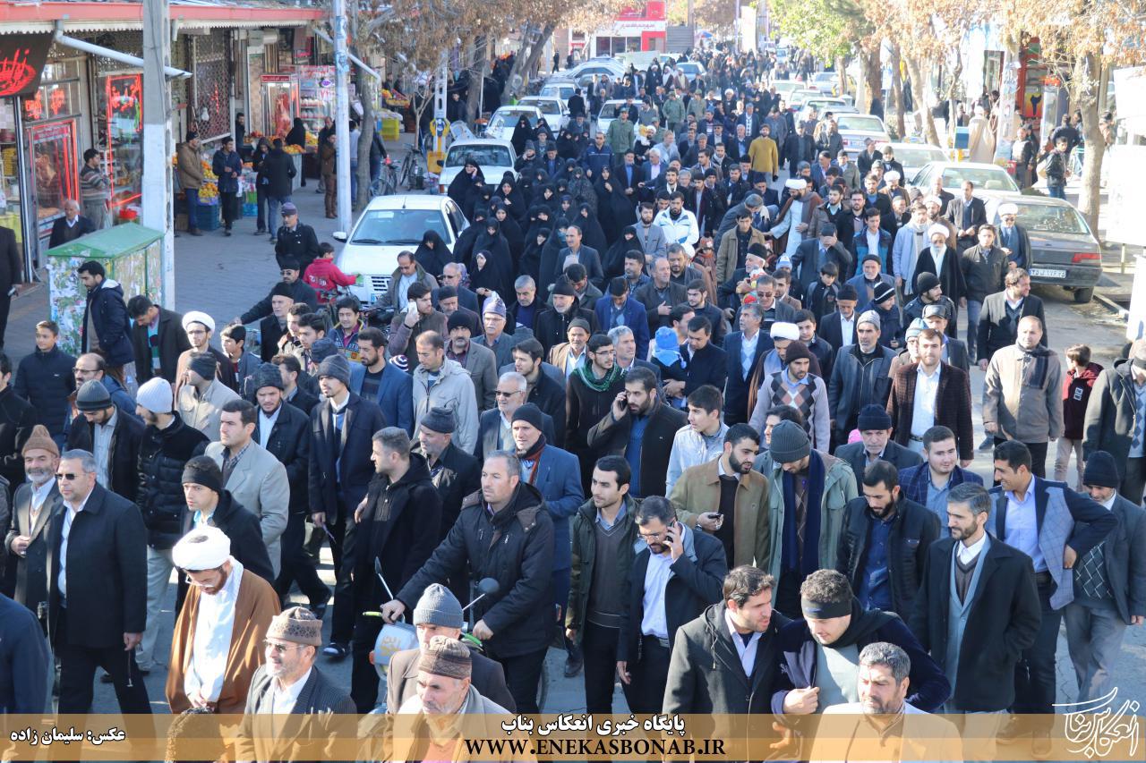 به گزارش انعکاس بناب، آحاد مردم شریف و متدیّن بناب پس از اقامه نماز جمعه روز ۱۷ آذر ماه در محکومیت طرح شیطانی ترامپ و انتقال سفارتخانه آمریکا به بیت المقدس با شرکت و حضور گسترده در تظاهرات ضد آمریکایی – صهیونیستی و دفاع از قدس و فلسطین، همزمان با سراسر میهن اسلامی حضور یافتند.