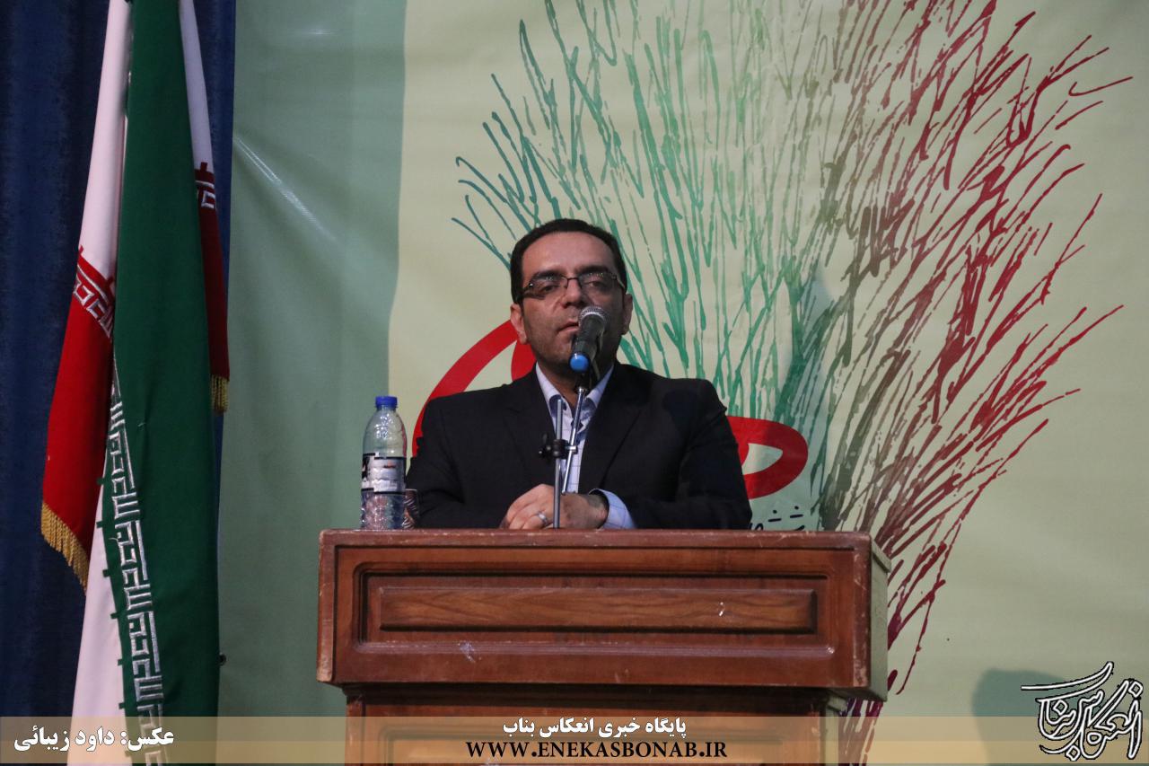 رئیس اداره فرهنگ و ارشاد اسلامی بناب در ادامه این مراسم با اشاره به نقش و جایگاه هنر در میان مردم و با اشاره به دیدگاه های مقام معظم رهبری در مورد هنر و هنرمندان گفت: دشمنی با هنر همانند دشمنی با خورشید است و همان گونه که خورشید موجب روشنایی و گرم شدن زمین می شود هنر هم موجب روشنایی و شادابی در یک جامعه می شود.