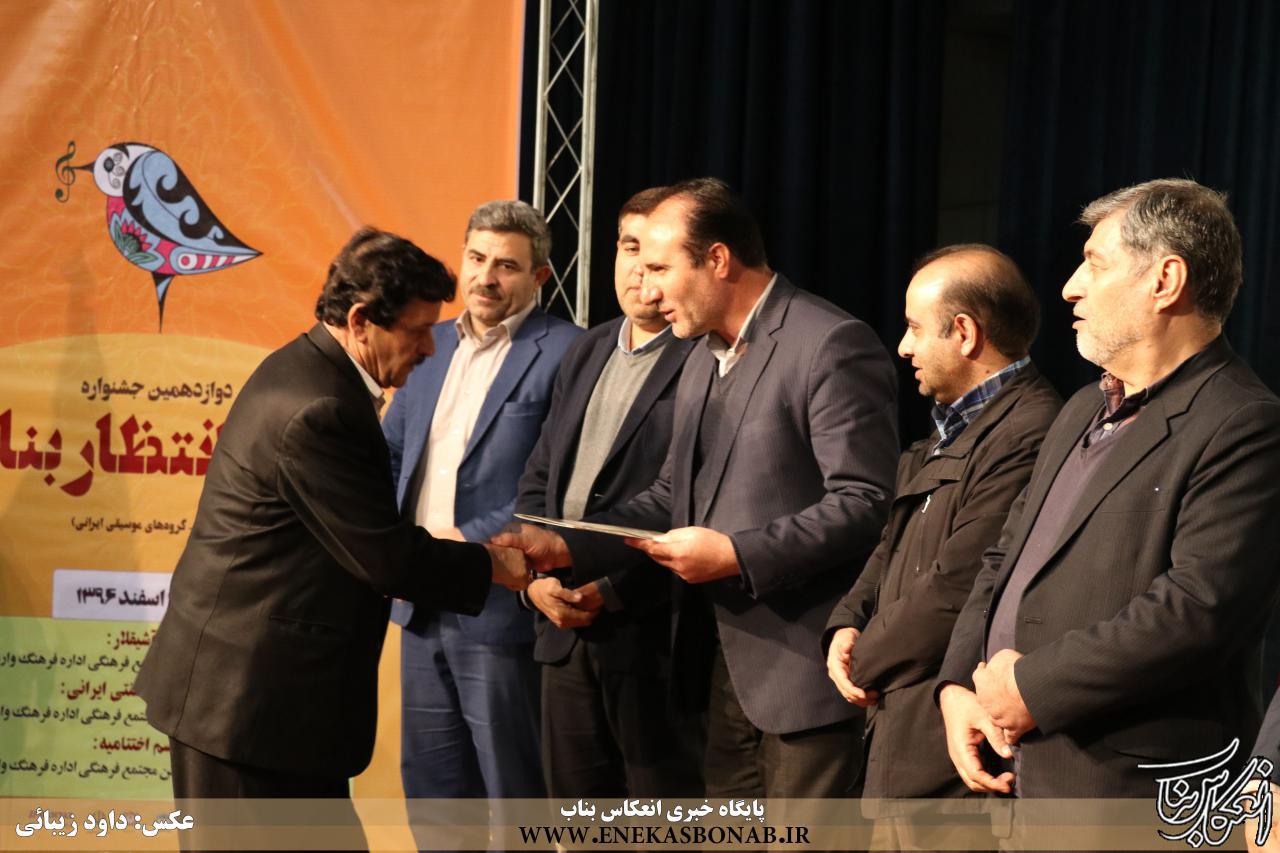 رئیس اداره ارشاد اسلامی شهرستان بناب با اشاره به اینکه در این جشنواره تنها ۱۶ گروه موسیقی ثبت نام کرده بودند، گفت: از ۱۶ گروه ۸ گروه در حوزه موسیقی سنتی و ۸ گروه در حوزه موسیقی عاشقانه با هم به رقابت پرداختند.