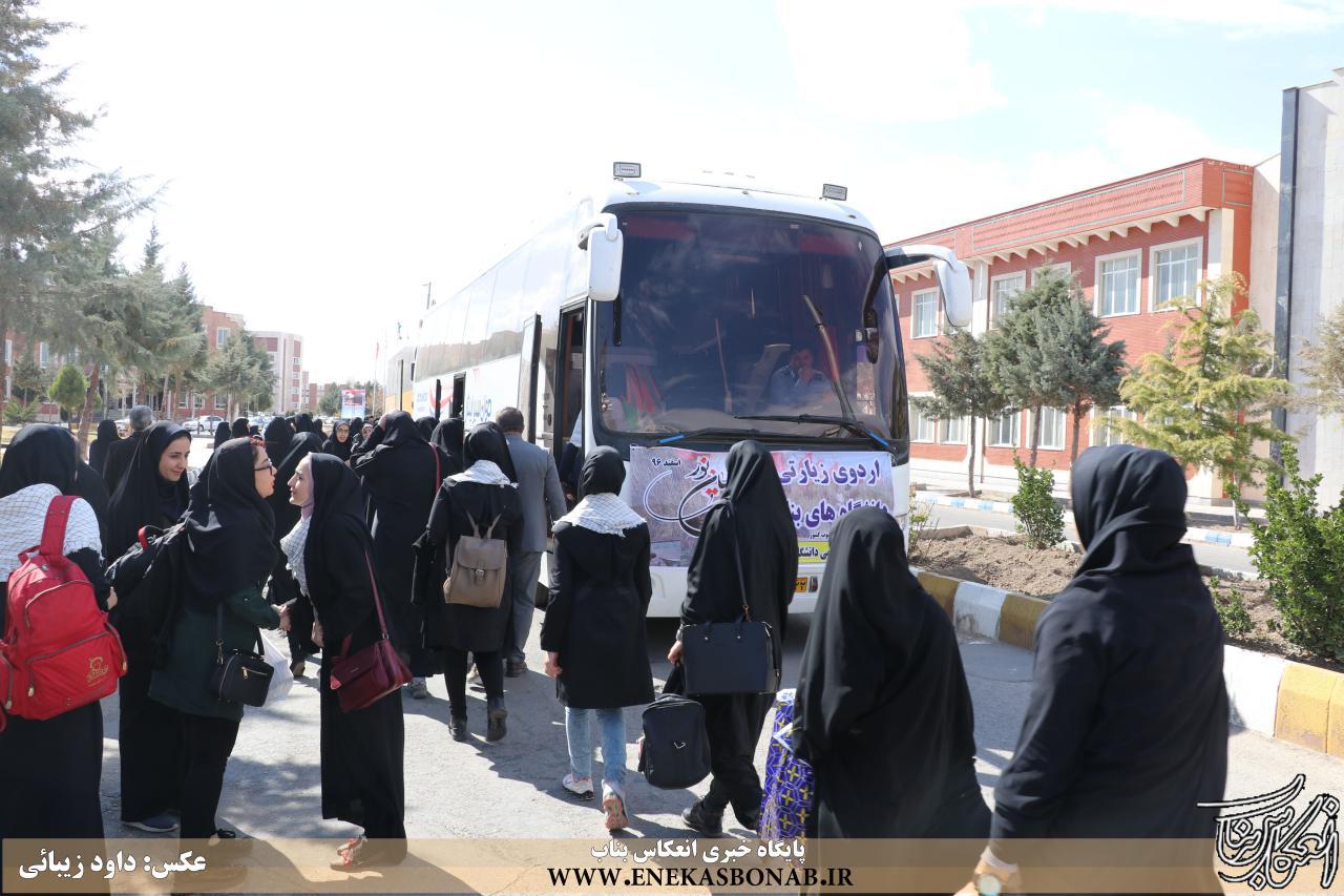 به گزارش انعکاس بناب، تعداد ۱۰۰ نفر از دانشجویان بسیجی دختر دانشگاه های دولتی، پیام نور و آزاد بناب به همراه راوی و کارشناس دینی با هدف آشنایی از رشادت های های شهدا و بازدید از مناطق عملیاتی عازم مناطق جنگی جنوب کشور شدند.