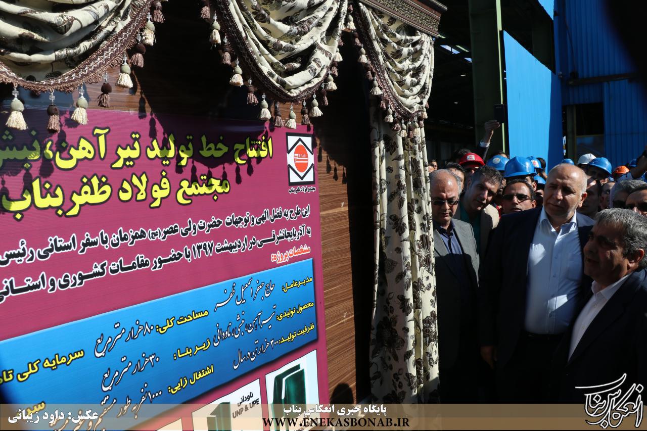معاون امور معادن و صنایع معدنی وزارت صنعت، معدن و تجارت در این مراسم افتتاح خط تولید تیرآهن، نبش و ناودانی مجتمع فولاد ظفر بناب از تبدیل شهرستان بناب به عنوان یکی از قطب های اصلی فولاد کشور خبر داد و گفت: امروز این شهرستان با تلاش خود صنعتگران در عرصه فولاد توانسته در تولید و صادرات فولاد کشور نقش آفرینی و به عنوان قطب تولید فولاد کشور معرفی شود.