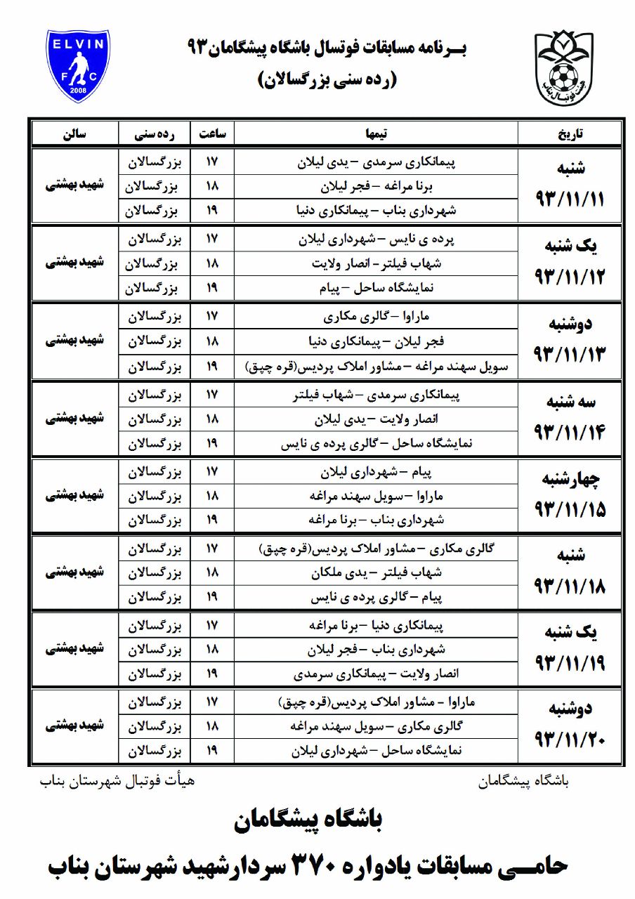 این مسابقات در چهار گروه ۴ تیمی از شهرستان های بناب – مراغه – عجب شیر – ملکان – لیلان برگزار میگردد
