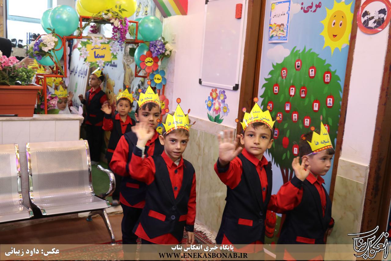 مراسم جشن غنچهها با حضور رئیس شورای اسلامی شهر، معاونت آموزش و پرورش بناب، نوآموزان و اولیای آنان در مرکز پیش دبستانی و مهدکودک سما برگزار شد.