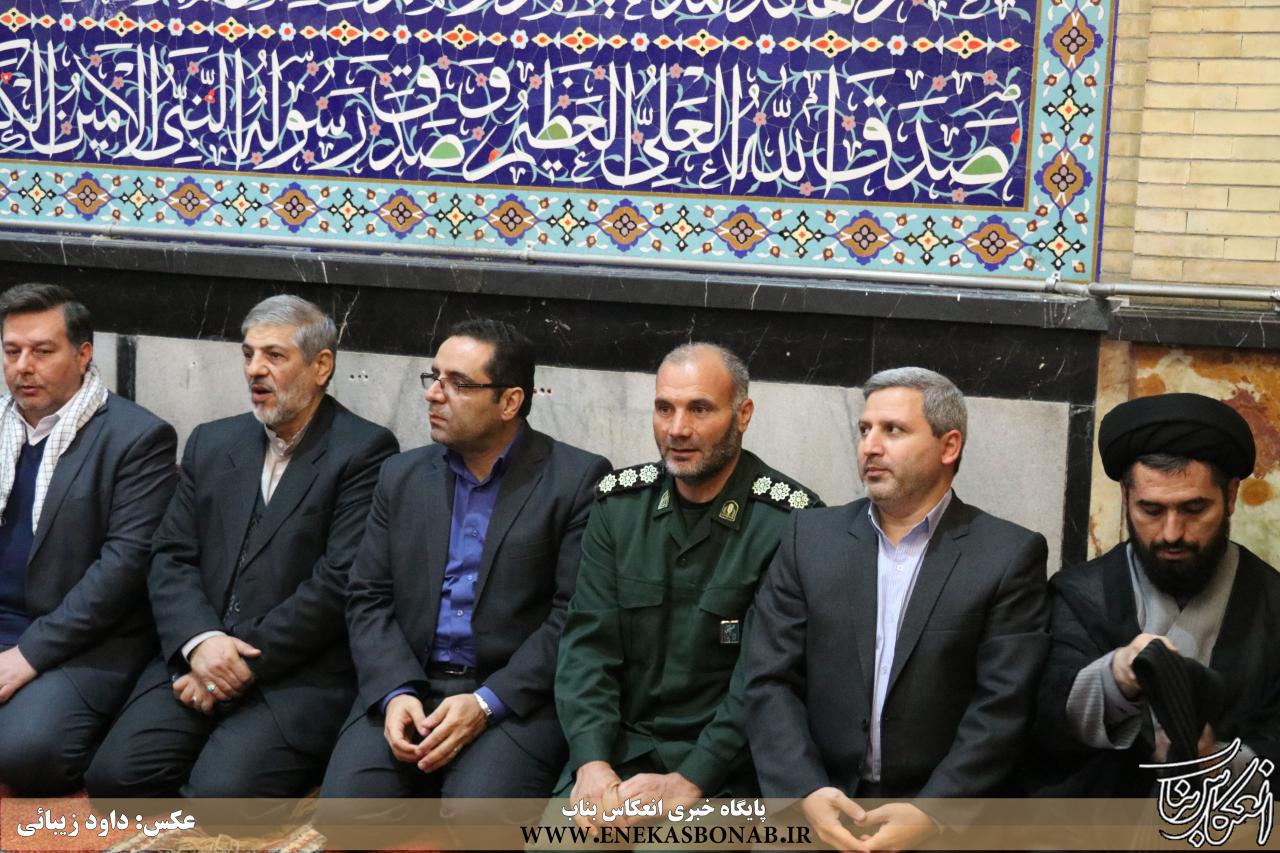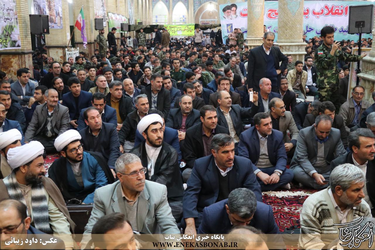 فرمانده سپاه ناحیه بناب در ابتدای این برنامه ضمن قدردانی از حضور پرشور اقشار مختلف مردم، اعم از بسیجیان جان بر کف، اصناف، بازاریان، تشکل های دانشجویی، خانواده ایثارگران و شهداء، بسیج دانش آموزی، بسیج خواهران، رزمندگان و سایر اقشار مردم همیشه در صحنه بناب، گفت: از همکاری تمامی نهادها اداری و نظامی که در برگزاری این همایش یاریگر ما بودند تشکر می کنم.