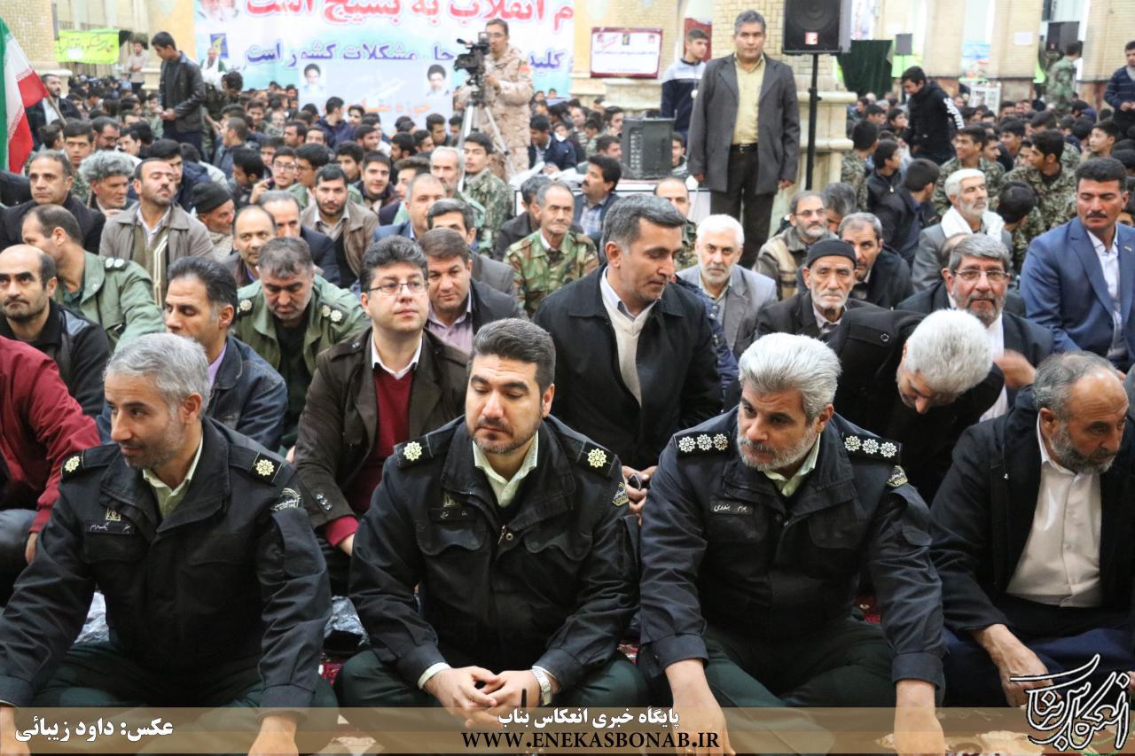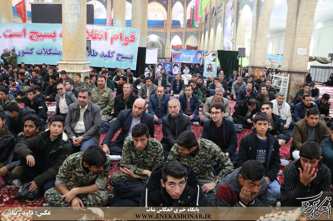 به گزارش انعکاس بناب، همزمان با ۵ آذر و در آستانه سالروز تشکیل بسیج به فرمان امام خمینی(ره)، اجتماع بزرگ بسیجیان با حضور سردار محمد یوسف شاکری، امام جمعه، نماینده مردم در مجلس شورای اسلامی، فرماندار، نیروهای نظامی و انتظامی و جمع کثیری از بسیجیان در محل مصلی اعظم بناب برگزار شد. .