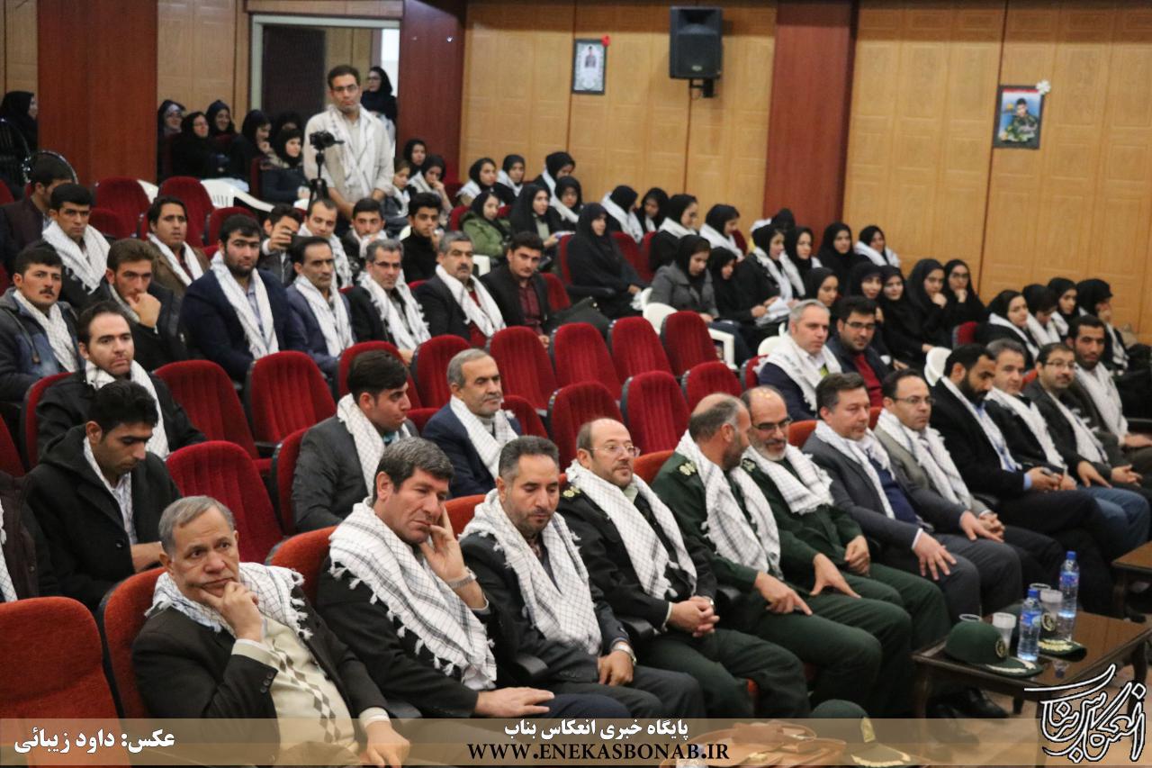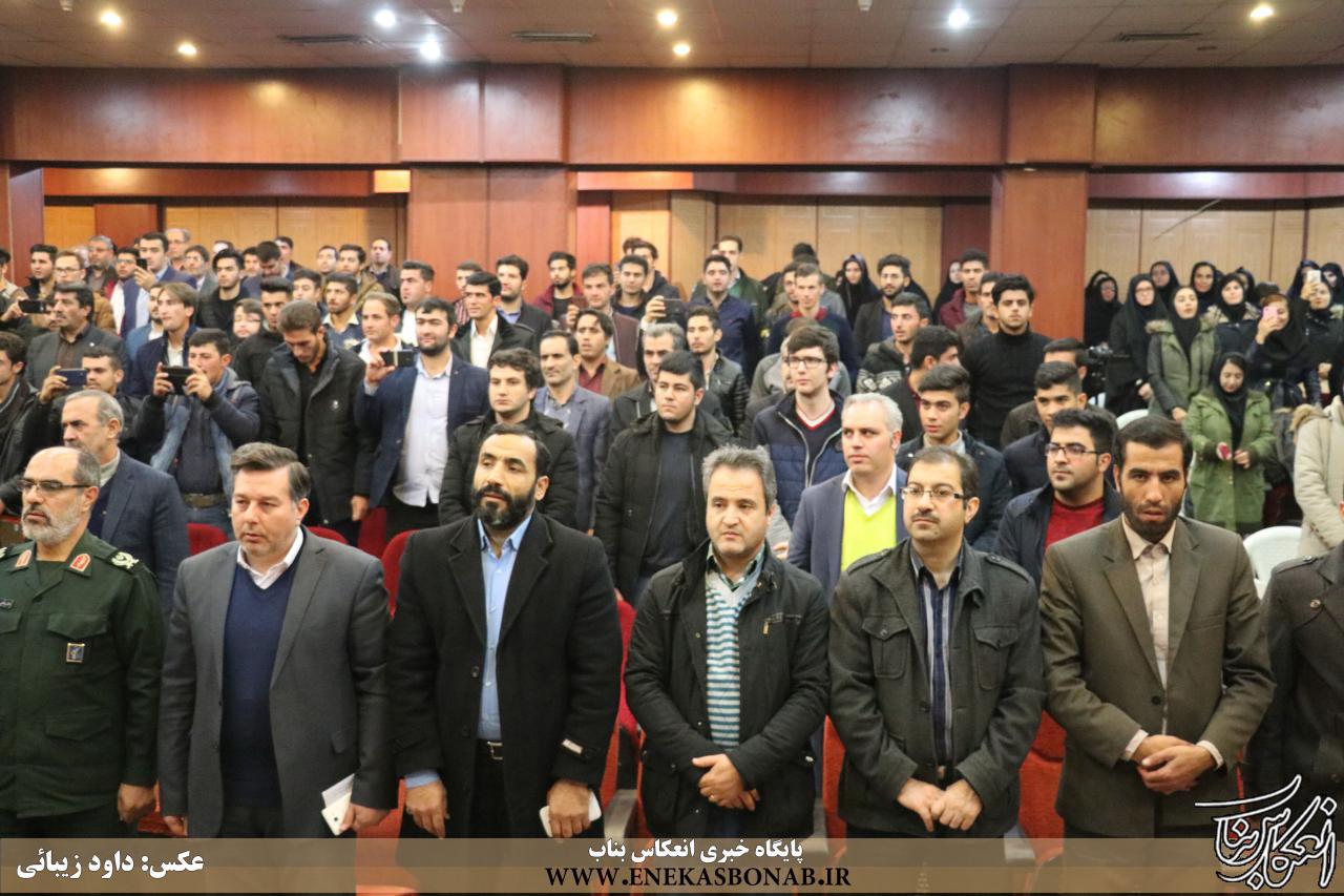 به گزارش انعکاس بناب، به مناسبت گرامیداشت هفته وحدت و بسیج چهارمین یادواره شهدای دانشگاهی با حضور سردار عباسقلی زاده جانشین سپاه عاشورا، فرمانده سپاه بناب، مسئولان و مدیران شهرستان و جمع کثیری از دانشجویان در سالن آمفی تئاتر دانشگاه آزاد اسلامی واحد بناب بر گزار شد.