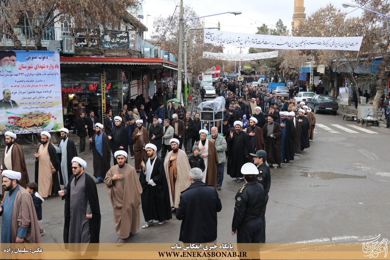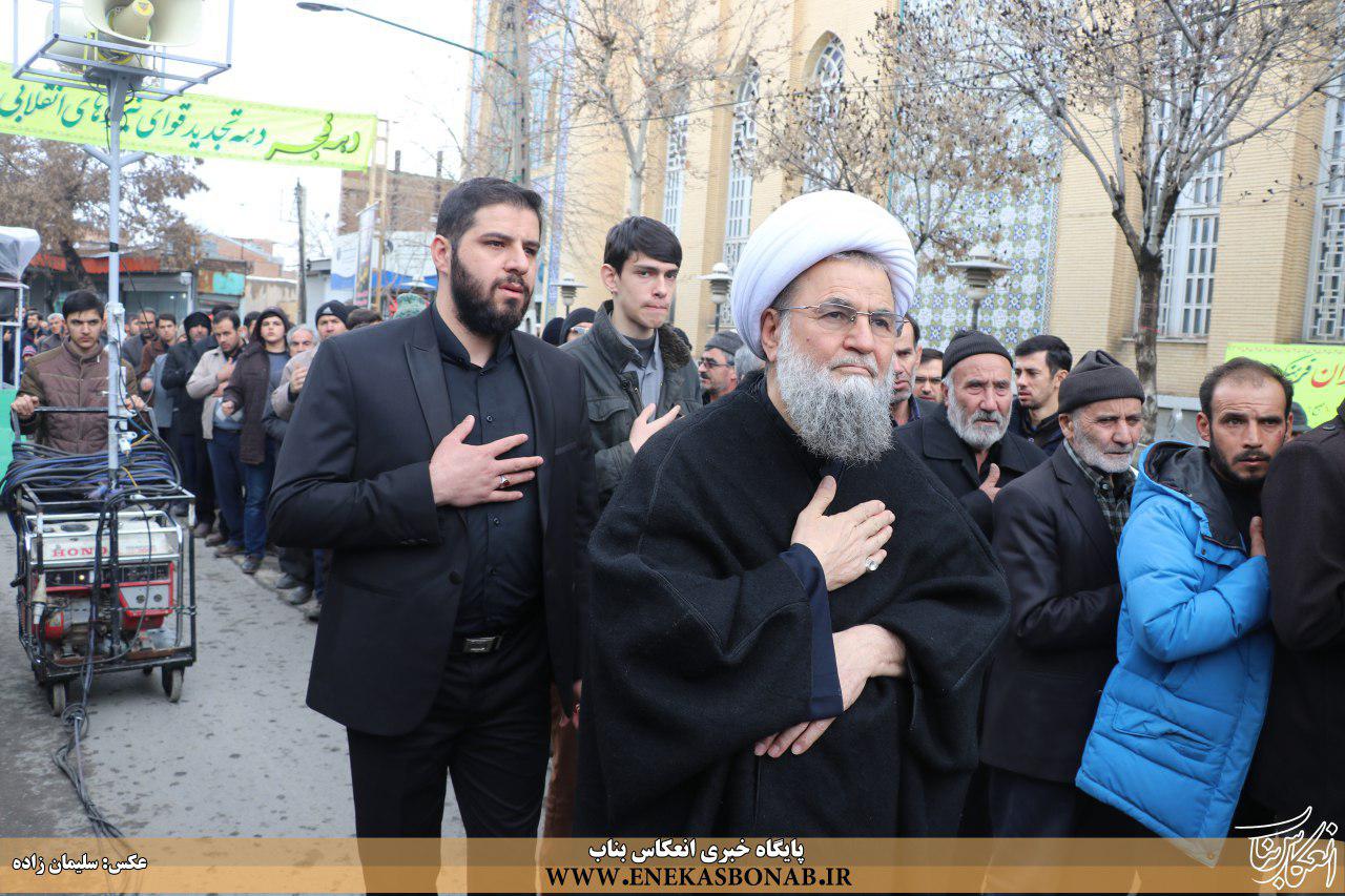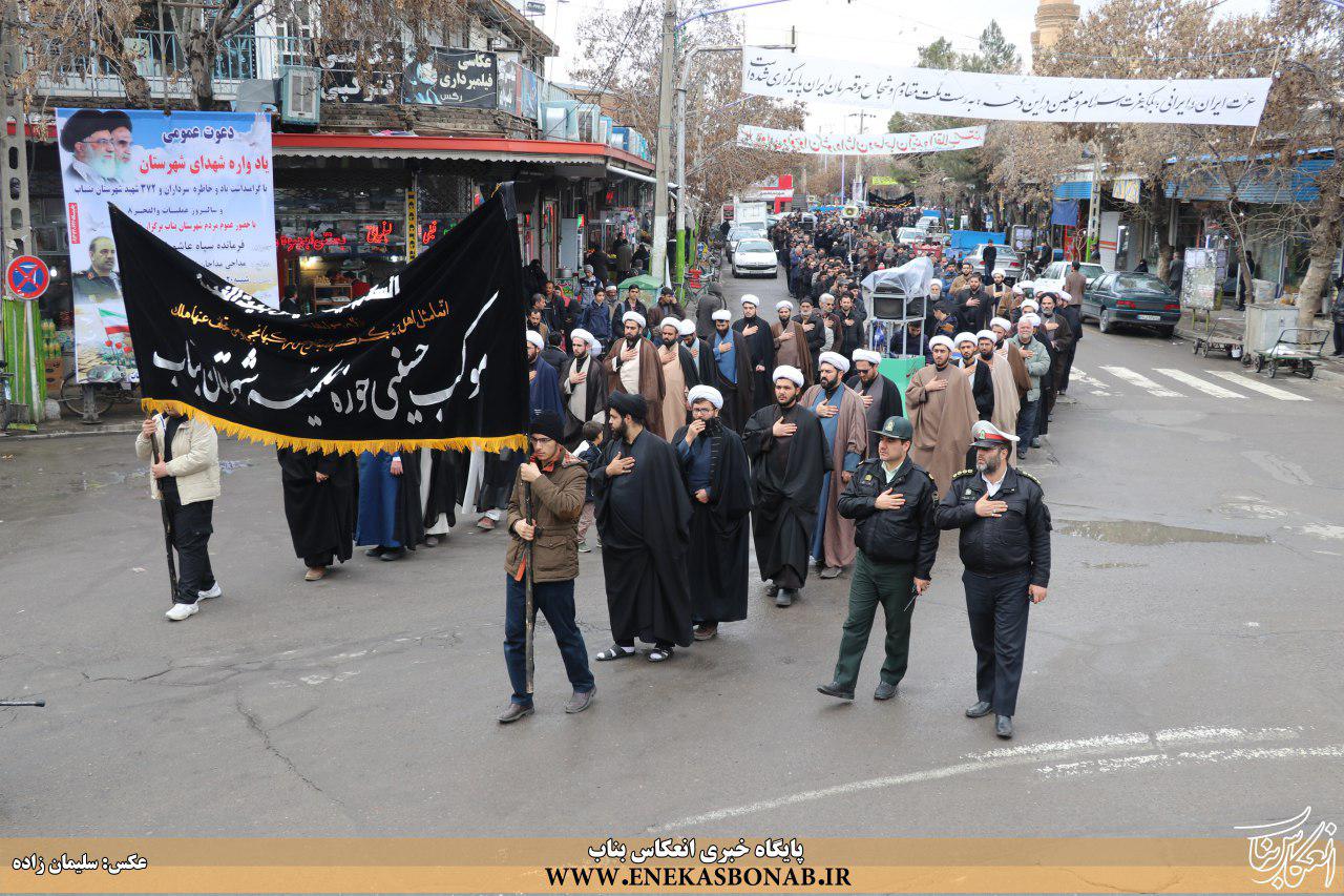 مردم مومن و ولایتمدار شهرستان بناب در سالروز شهادت بی بی دو عالم حضرت فاطمه زهرا (س)، به عزاداری و سینه زنی پرداختند.