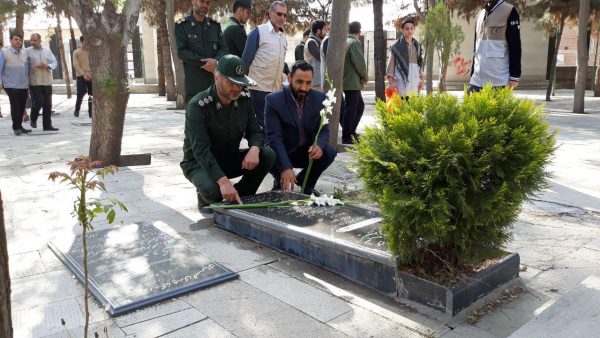 صبح امروز به مناسب هفته معلم و عقیدتی سیاسی سپاه مزار گلزار شهدای شهرستان بناب با حضور معلمین و بسیجیان سپاه ناحیه بناب غبار روبی و عطر افشانی شد.