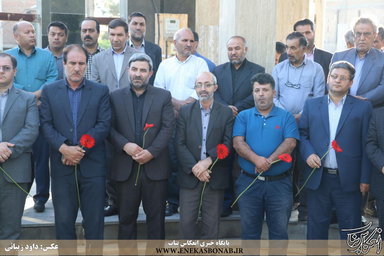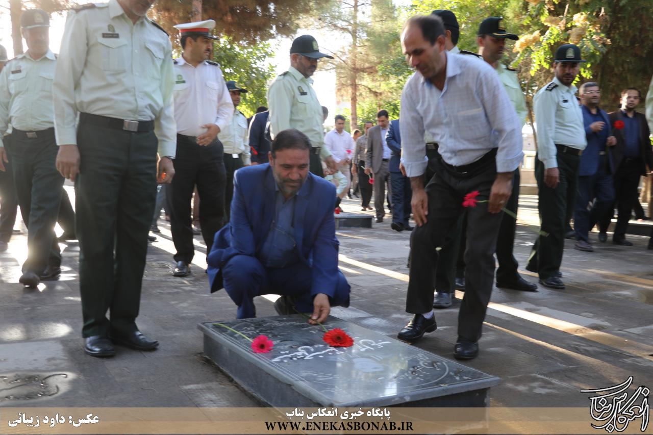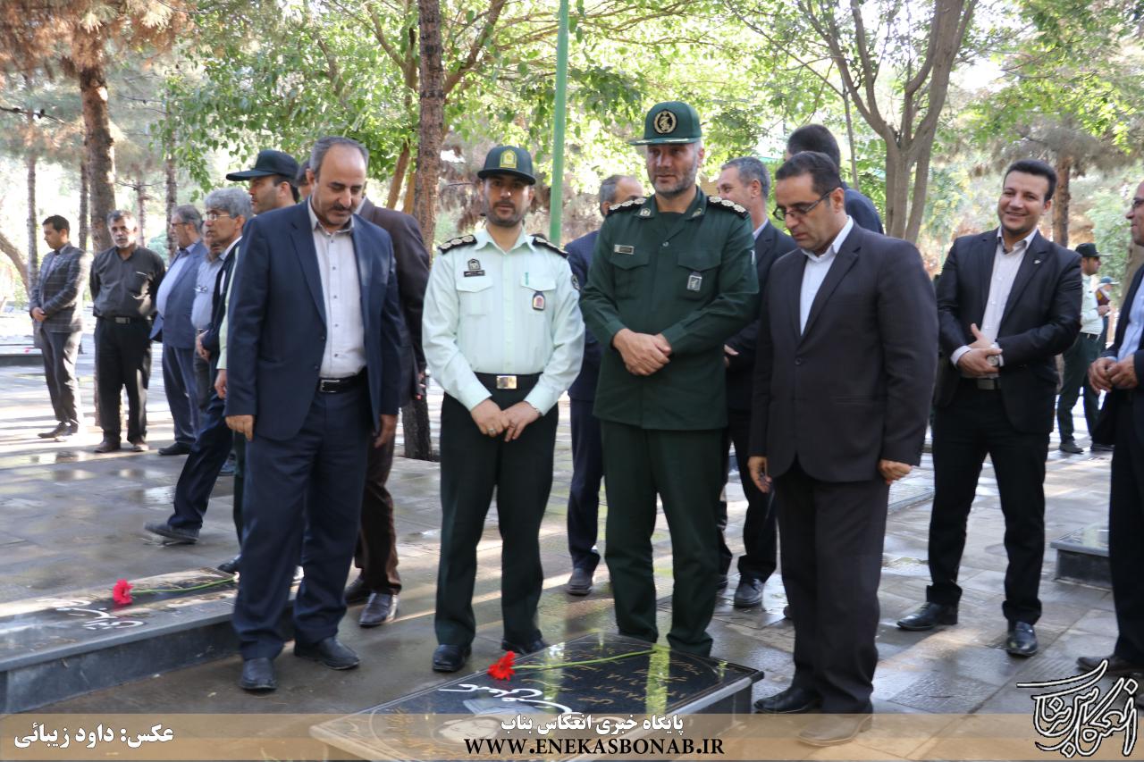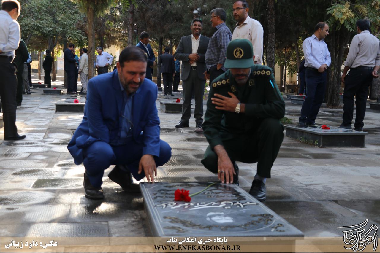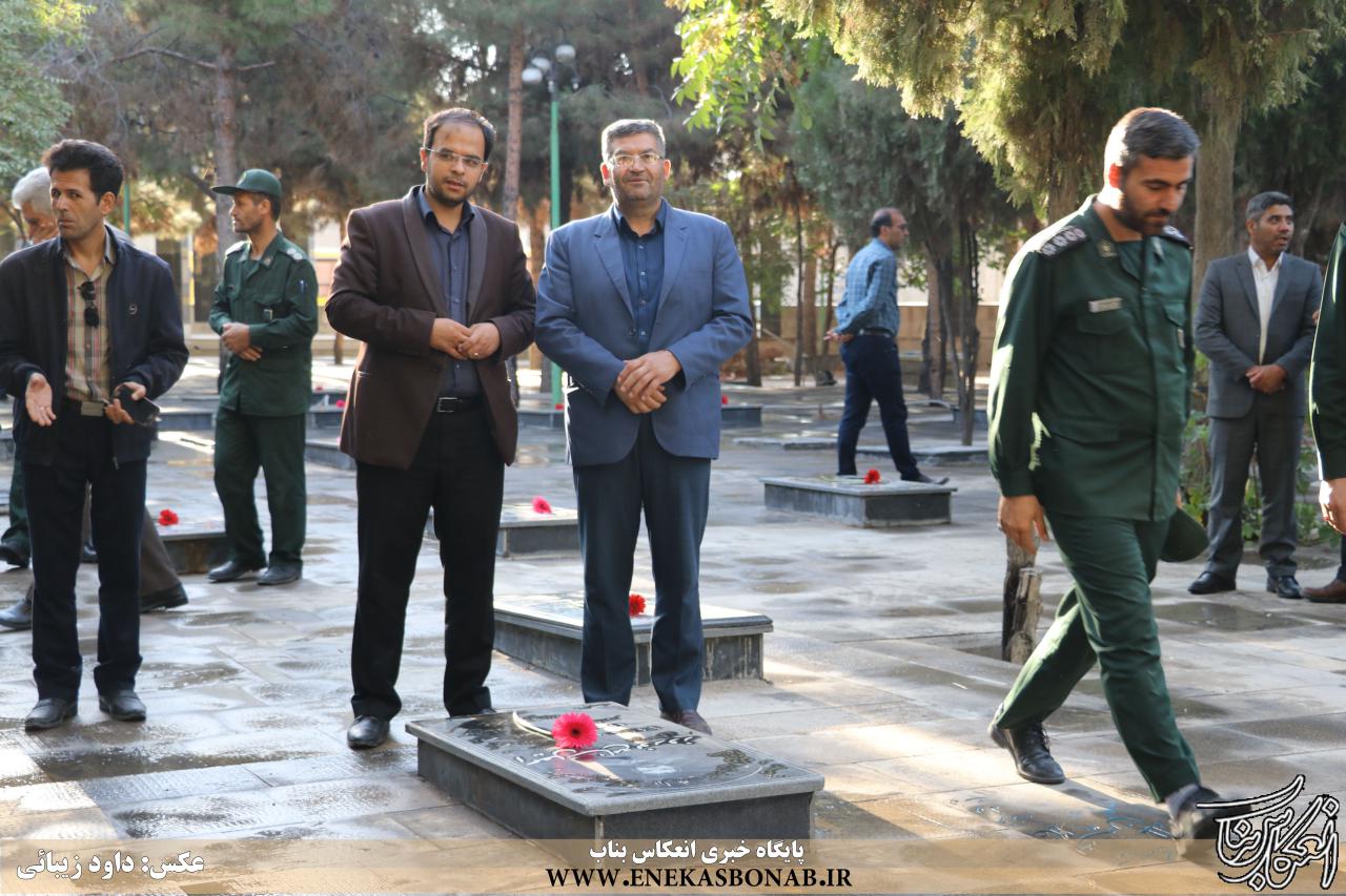 به گزارش انعکاس بناب، صبح امروز همزمان با آغاز هفته دولت، نماینده مردم بناب در مجلس شورای اسلامی، فرماندار و سایر مسئولان و کارمندان اداره های شهرستان بناب با حضور در مزار شهدای گلشن امام حسن (ع) یاد و خاطره شهدا را با نثار فاتحه گرامی داشتند.