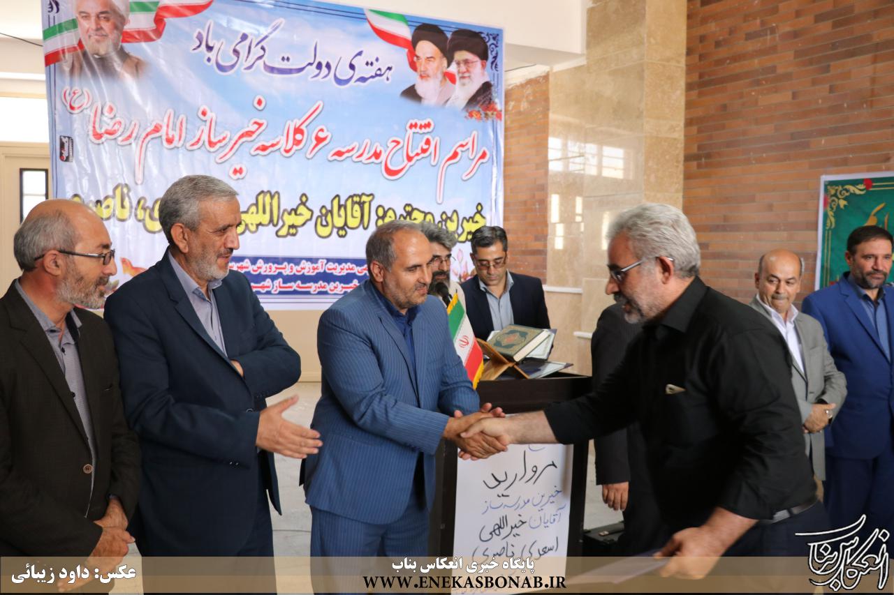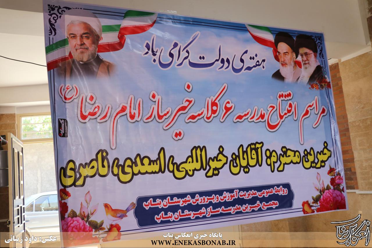 به گزارش انعکاس بناب، همزمان با ششمین روز از هفته دولت مدرسه ۶ کلاسه امام رضا (ع) در زمینی به مساحت ۱۰۰۰ متر مربع و با اعتباری بیش از ۱۵ میلیارد ریال توسط خیرین محترم آقایان وحید خیر الهی، ناصری و اسدی افتتاح شد.