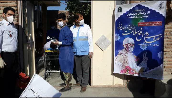 در این رزمایش بسیجیان بعد از آموزش نحوه انتقال بیمار کرونا به مراکز درمانی، عملا خود وارد میدان شده و چند بیمار فرضی را به مراکز درمانی انتقال دادند.