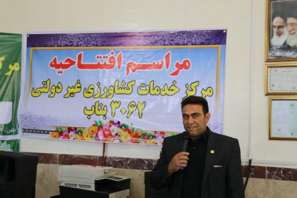 به گزارش انعکاس بناب، قبل از ظهر امروز همزمان با هفته دولت مرکز خدمات کشاورزی غیر دولتی تحت نظارت سازمان نظام مهندسی کشاورزی و منابع طبیعی با حضور مسئولان شهرستان بناب به بهره برداری رسید.