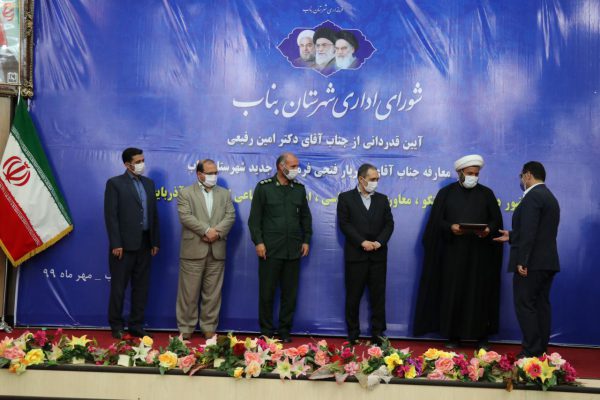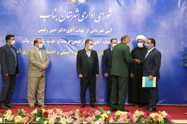 گفتنی است در این مراسم ضمن قدردانی از زحمات و تلاش های امین رفیعی، طی حکمی از سوی استاندار آذربایجان شرقی رسما بعنوان فرماندار بناب منصوب گردید.
