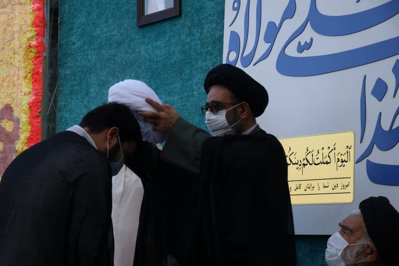 گزارش تصویری انعکاس بناب از جشن بزرگ امامت و ولایت و ملبس شدن ۳۰ نفر از طلاب حوزه علمیه بناب به لباس روحانیت با حضور آیت الله آل هاشم