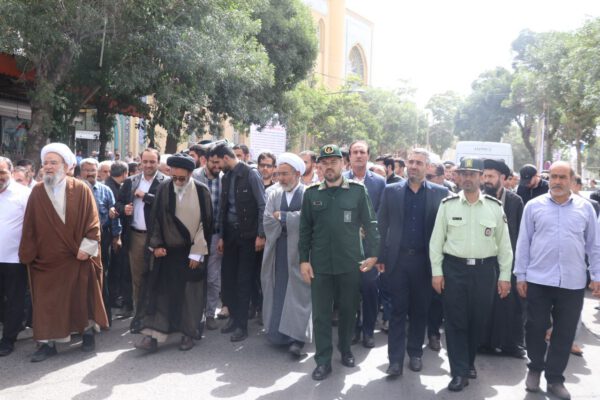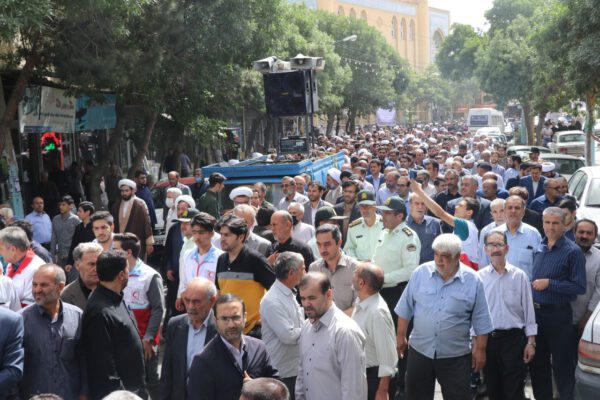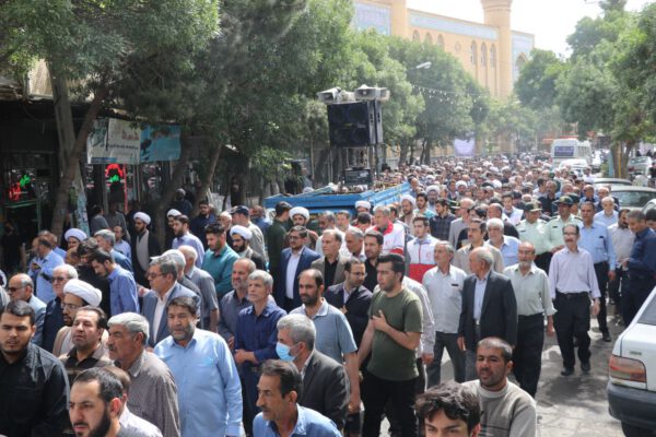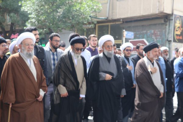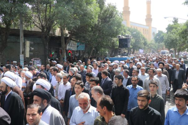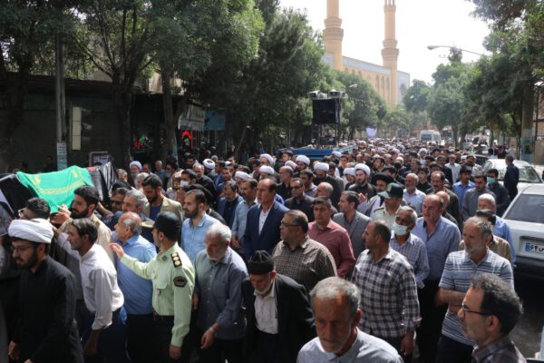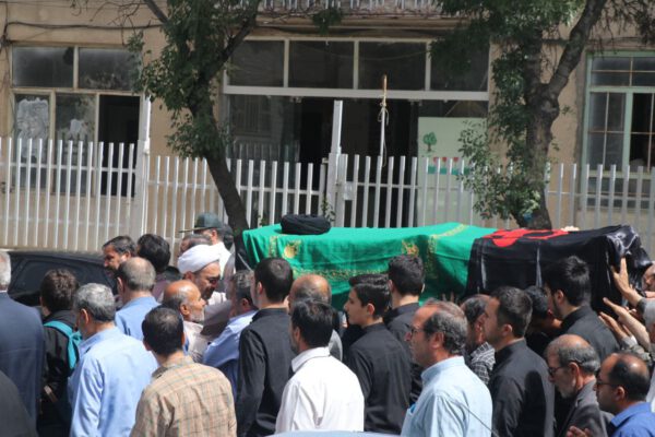 سپس پیکر مرحوم حجت الاسلام و المسلمین موسی آتش زر دوش حاضرین حدفاصل مصلی اعظم تا بهشت زهرا شهرستان بناب را طی نمودند.