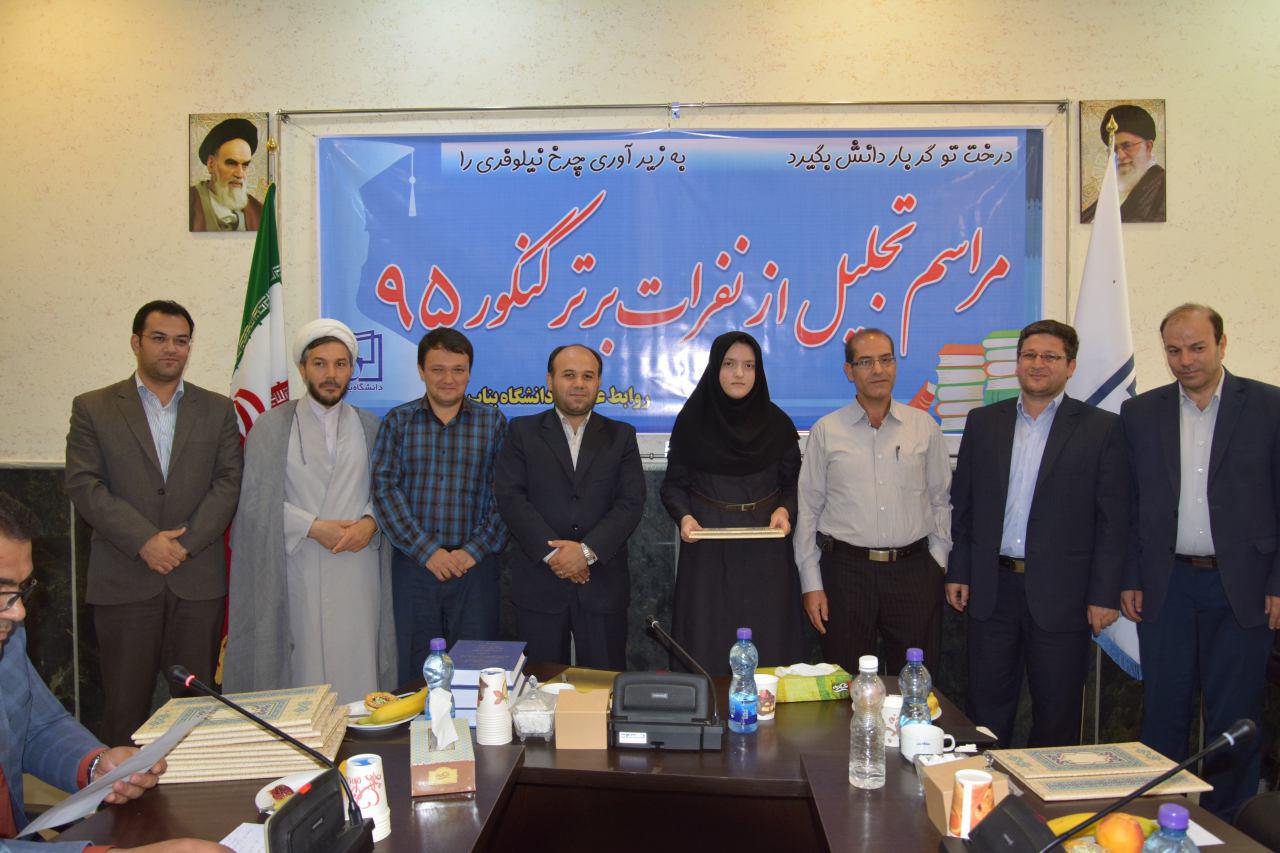 گفتنی است در این مراسم از رتبه های زیر ۱۰۰ کنکور ۹۵ توسط دانشگاه بناب تجلیل به عمل آمد.