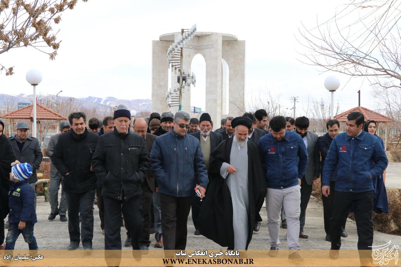 گفتنی است، قبل از برگزاری مراسم درختکاری شرکت کنندگان به صورت دسته جمعی، به شهدای گمنام مدفون در پارک فدک بناب ادای احترام کردند.