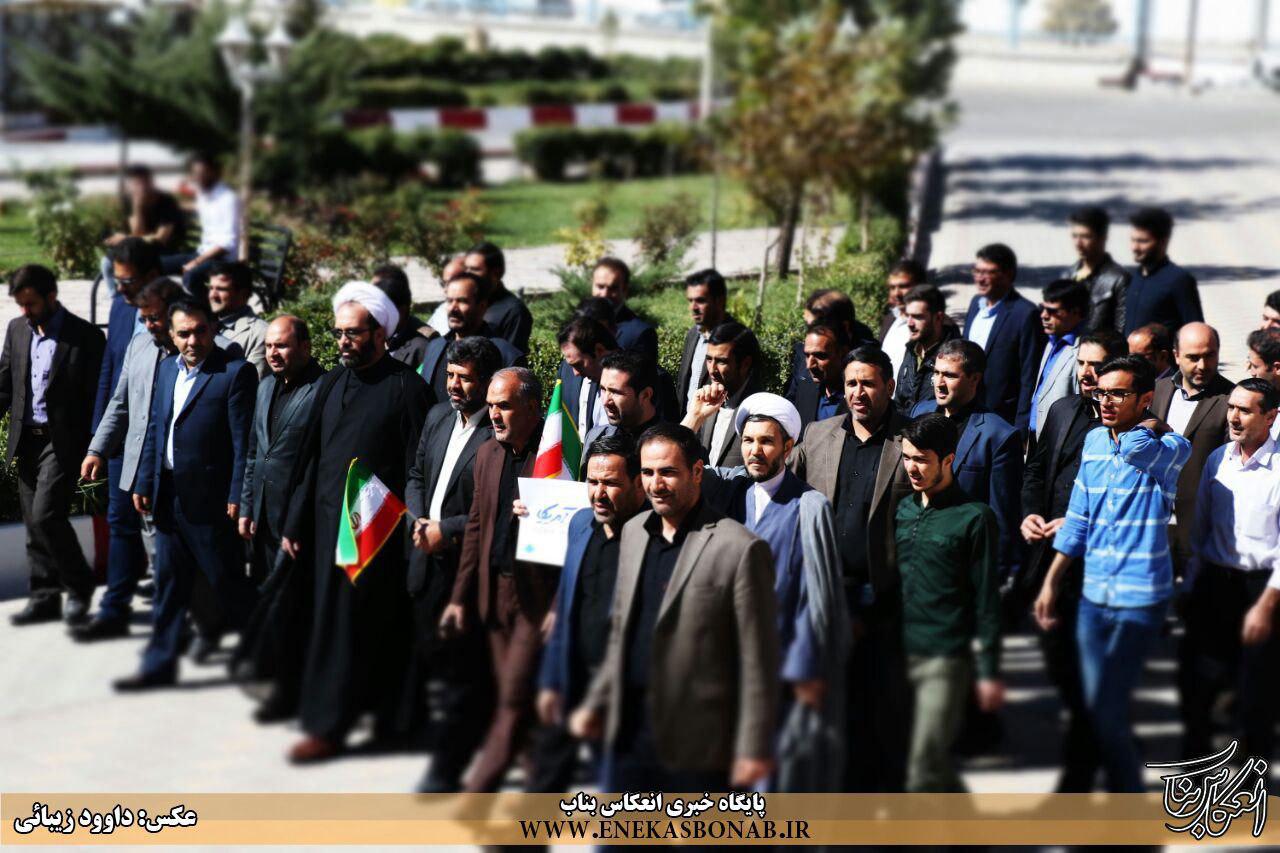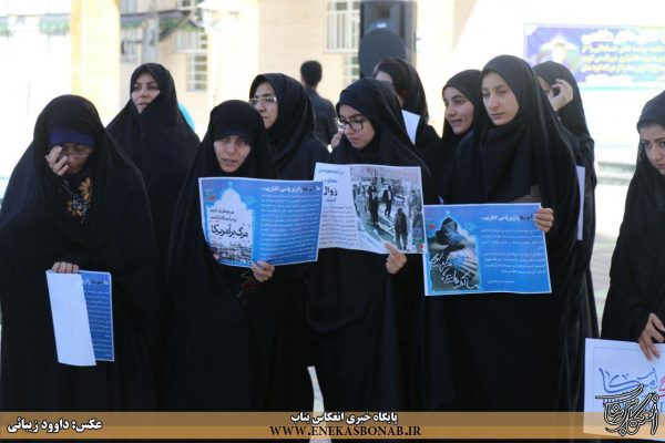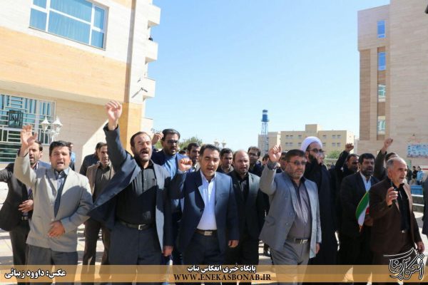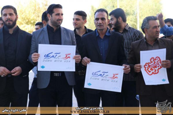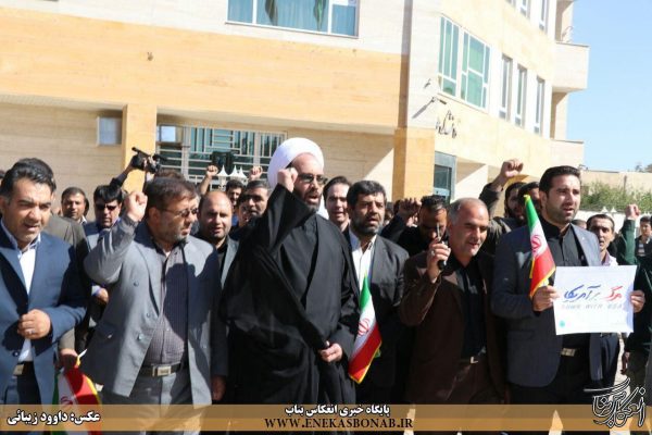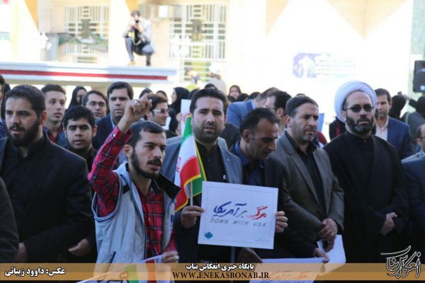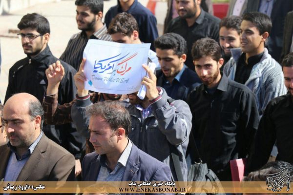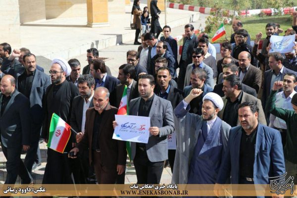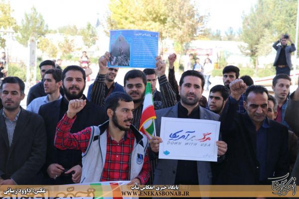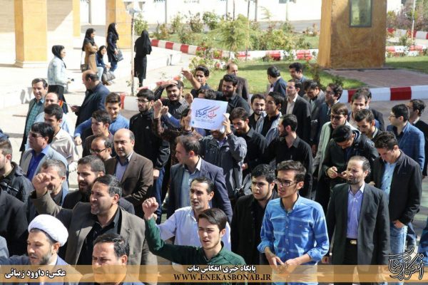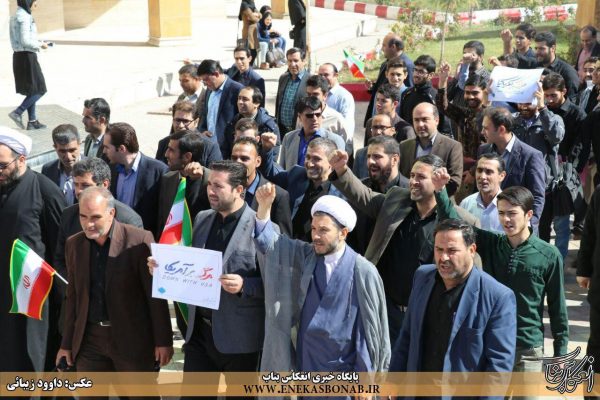 به گزارش انعکاس بناب، در این تجمع دانشجویان با سر دادن شعار «مرگ بر آمریکا و مرگ بر اسرائیل» اعتراض خود را به سخنان ترامپ اعلام کردند.