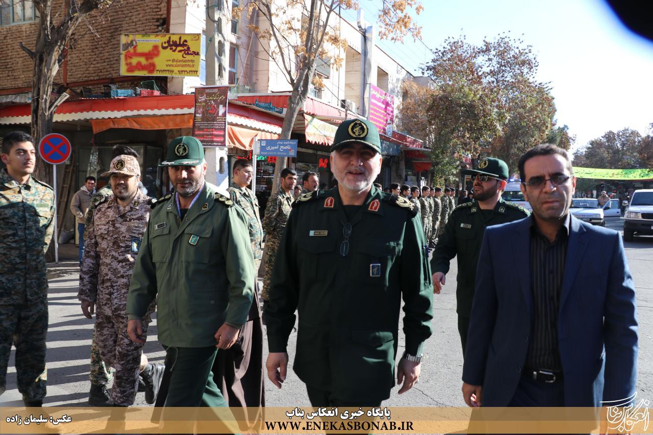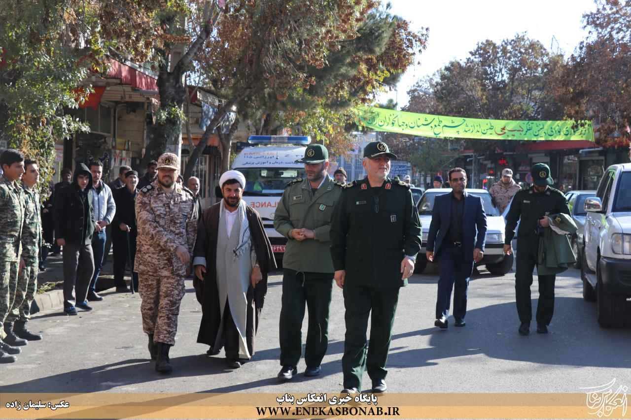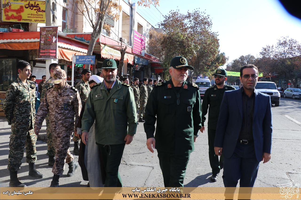 فرمانده سپاه ناحیه بناب در حاشیه این برنامه ضمن قدردانی از حضور پرشور اقشار مختلف مردم، اعم از بسیجیان جان بر کف، اصناف، بازاریان، تشکل های دانشجویی، خانواده ایثارگران و شهداء، بسیج دانش آموزی، بسیج خواهران، رزمندگان و سایر اقشار مردم همیشه در صحنه بناب، گفت: از همکاری تمامی نهادها اداری و نظامی که در برگزاری این همایش یاریگر ما بودند تشکر می کنم.