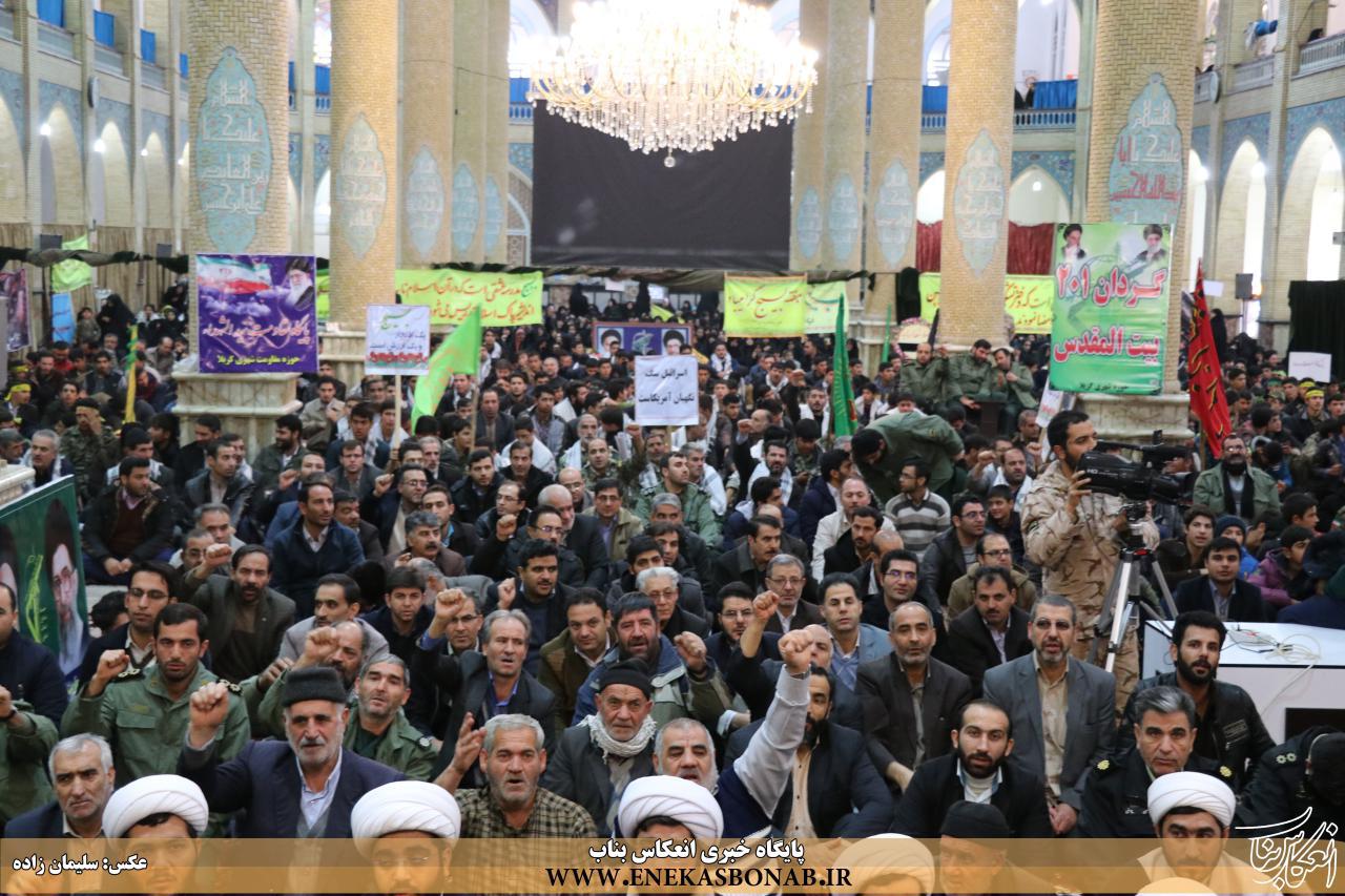 در این همایش که بر محور شعار هیات منا ذله آموزگار مکتب عشق امام حسین(ع) نشات گرفته فریاد مرگ بر آمریکا و مرگ بر اسراییل و لبیک یا خامنه ای لبیک یا حسین  در مصلی اعظم بناب طنین انداز شد.