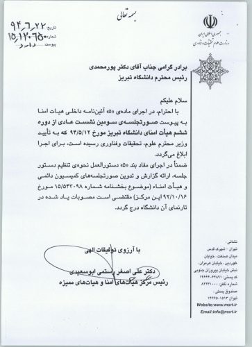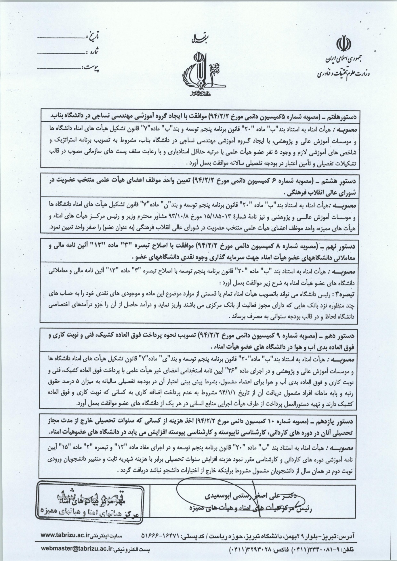 احتراما پیرو انتشار خبری به نقل از نماینده مردم فهیم شهرستان بناب در مجلس شورای اسلامی که در جلسه گزارش عملکرد دوران نمایندگی خویش در مورخه ۱۴/۰۹/۱۳۹۶ در مسجد انجمن بیان فرموده­اند: “نماینده بناب از یک رانت مالی در دانشگاه بناب پرده برداشت: