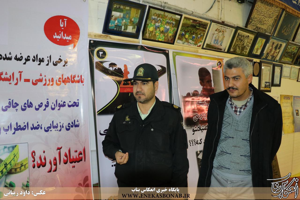 نمایشگاه پیشگیری از آسیبهای اجتماعی نیروی انتظامی بناب در راستای تقویت و گسترش فرهنگ پیشگیری از معضلات اجتماعی و اعتیاد و ایجاد باورهای صحیح برای ورزشکاران و علاقه مندان در ورزشگاه باستانی شهرداری بناب برگزار شده است.