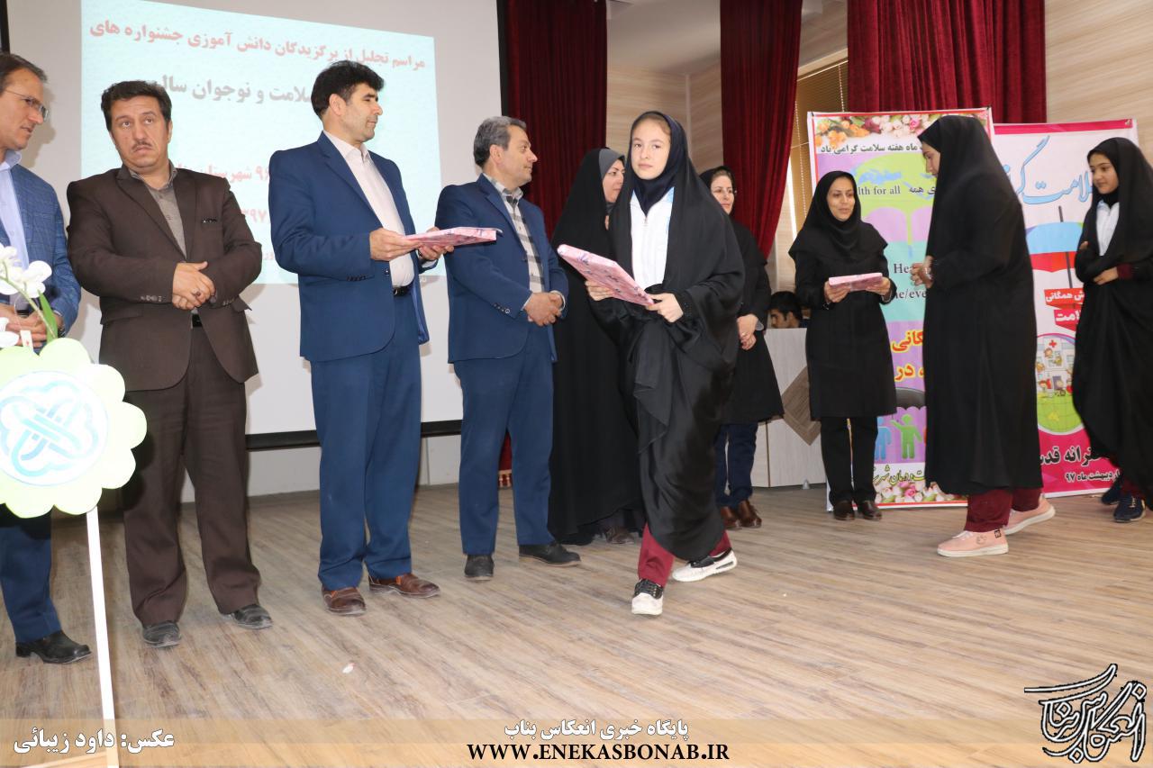 به گزارش انعکاس بناب، مراسم تجلیل از برگزیدگان جشنوارهای نوجوان سالم و سفیران سلامت به همت اداره آموزش و پرورش و شبکه بهداشت شهرستان بناب در محل کانون ۱۳ بناب برگزار شد.
