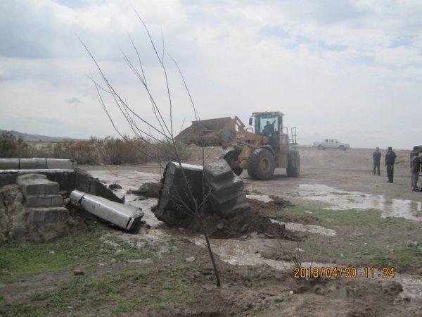 وی با بیان اینکه اداره منابع طبیعی شهرستان بناب برابر ماده ۴۵ قانون اساسی کشور با متخلفان به جد برخورد می کند، گفت: اخیرا مأمورین این اداره گزارش کردند فردی به نام (ع.ق) اقدام به تخریب و سپس تصرف مقدار ۸ هزارو ۴۰۰ متر مربع از اراضی ملی روستاهای خانه برق قدیم را نموده و با ایجاد ساختمان و اعیانی اراضی را متصرف شده است.