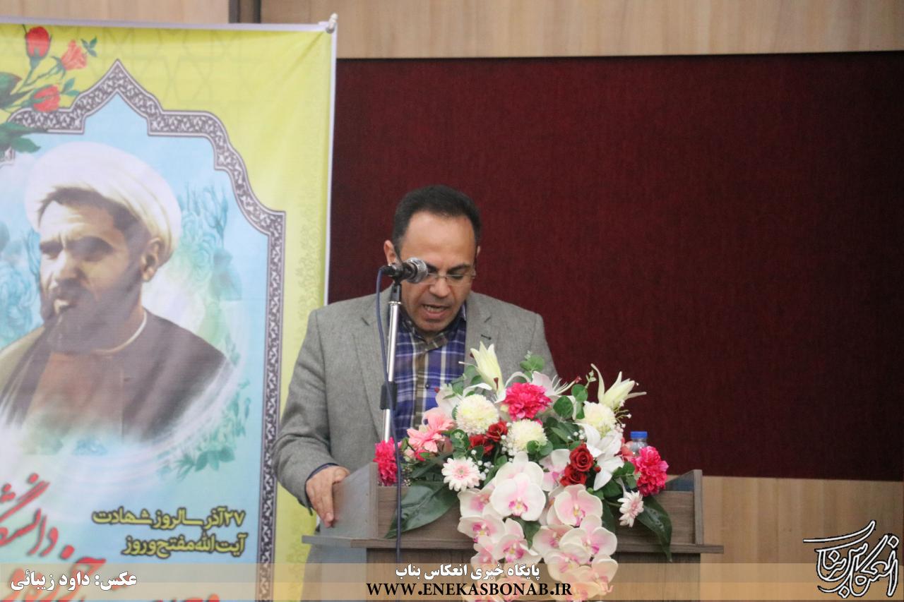 به گزارش انعکاس بناب، حسین پیری در ابتدای این مراسم ضمن عرض تسلیت به مناسبت شهادت حضرت فاطمه معصومه(س) و آیت الله مفتح نقش حوزه و دانشگاه در توسعه و گسترش علم و دین را بسیار مهم دانست و گفت: حوزه های علمیه قبل از انقلاب اسلامی در جهت برپایی عدالت و گسترش دین و فرهنگ اسلامی نقش پرنگی در این کشور داشته اند.