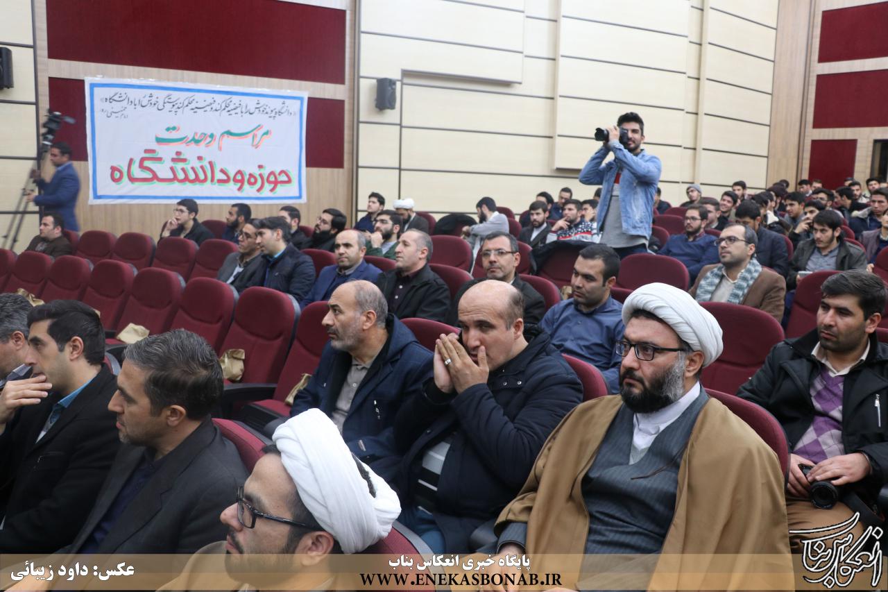 رئیس دانشگاه بناب وحدت و یکپارچگی هر چه بیشتر دانشگاه ها با حوزه های علمیه را بسیار مهم دانست و گفت: بنا به فرمایشات امام خمینی(ره) دانشگاه و حوزه برای پیشرفت باید درکنار و پشت هم باشند چراکه دین و علم با کمک هم رشد می کنند.