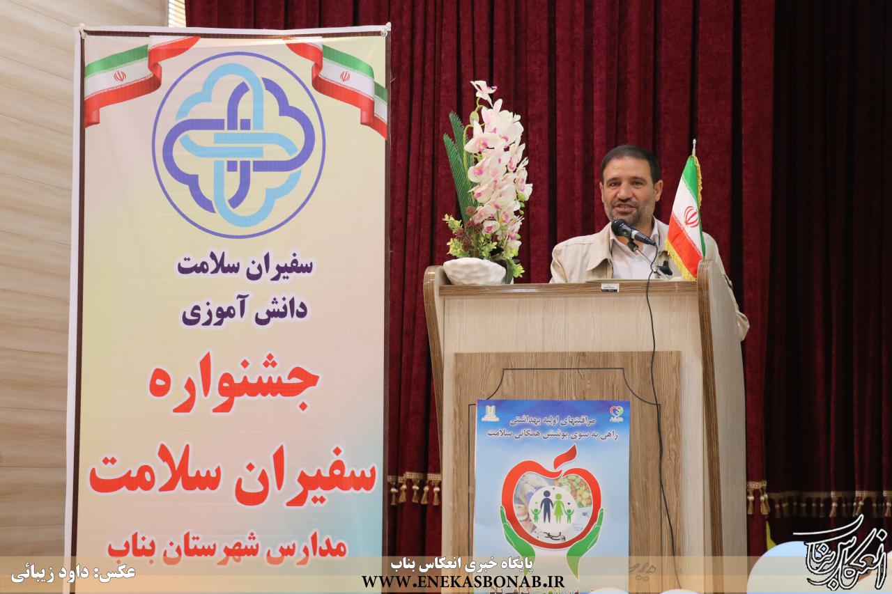 به گزارش انعکاس بناب، نهمین جشنواره سلامت و نوجوان سالم با حضور نماینده مردم بناب در مجلس شورای اسلامی، فرماندار، رئیس آموزش و پرورش و جمعی از دانش آموزان دوره اول و دوم ابتدایی و اول و دوم دوره متوسطه در نالار علم این شهرستان برگزار شد.
