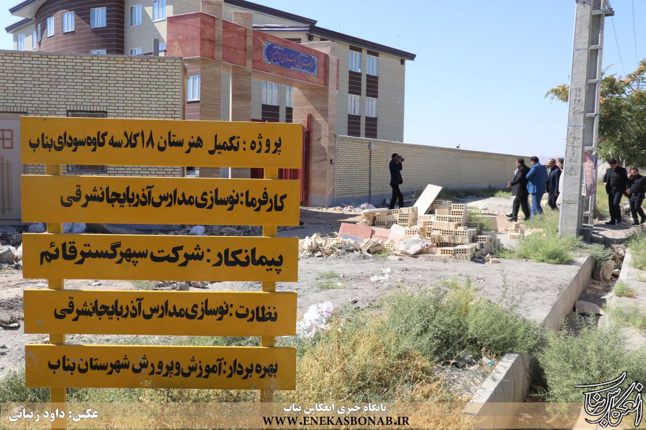 رخشانی مهر در پایان از تخریب و بازسازی دو مدرسه در شهرستان بناب در مهر ماه سال جاری خبر داد و گفت: با پیگیری های نماینده مردم بناب در مجلس شورای اسلامی، فرماندار و رئیس آموزش و پرورش مقرر شد یک مدرسه ۶ کلاسه و یک مدرسه ۳ کلاسه در بناب بازسازی شود.