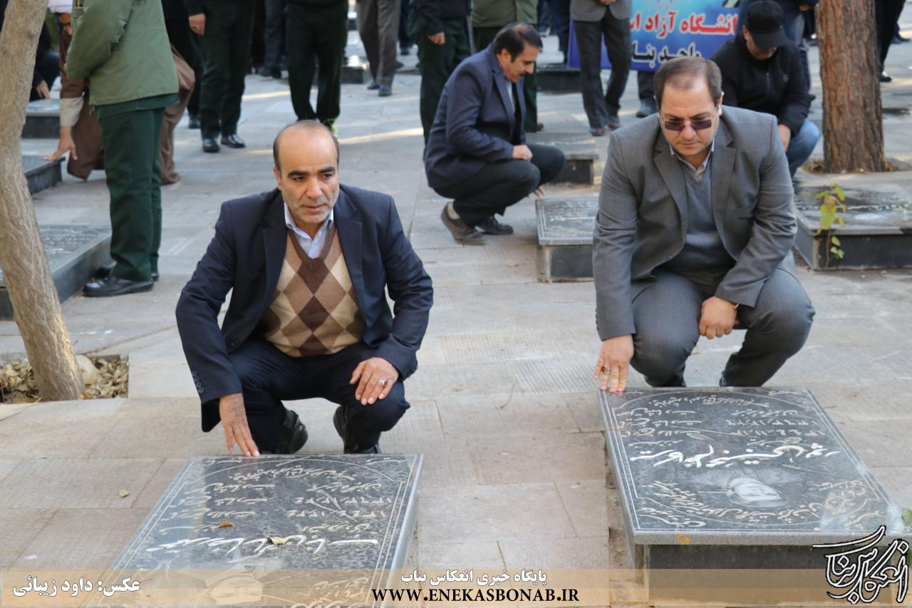 به گزارش انعکاس بناب، صبح امروز مراسم غبار روبی و عطر افشانی گلزار شهدای بناب با حضور بخشدار مرکزی، جمعی از فرماندهان نظامی و انتظامی، خانواده های معزز و معظم شهدا، جانبازان و ایثارگران و همچنین مردم انقلابی و شهیدپرور شهرستان بناب برگزار شد.