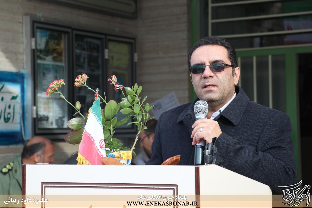در ادامه این مراسم مدیر آموزش و پرورش شهرستان بناب نیز ضمن عرض تبریک به مناسبت فرا رسیدن چهل و یکمین سالروز پیروزی انقاب اسلامی گفت: انقلاب اسلامی ایران بزرگ ترین رویدا قرن به حساب می آید که این انقلاب به رهبری امام خمینی (ره) به وجود آمد.