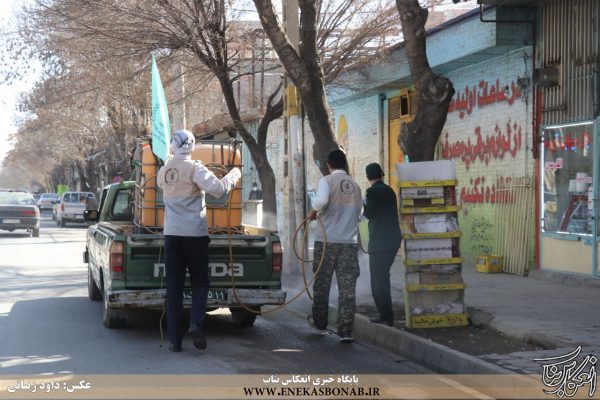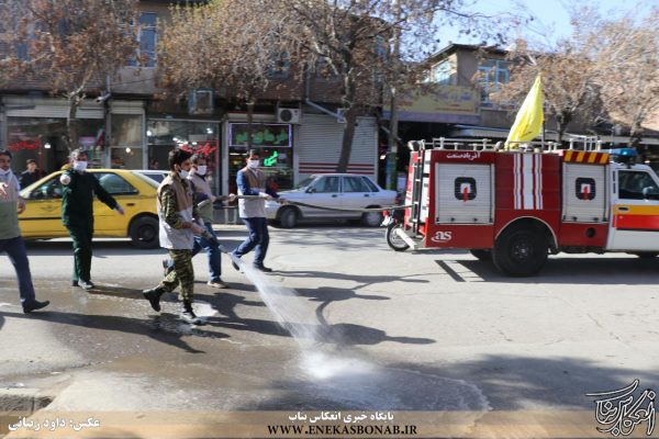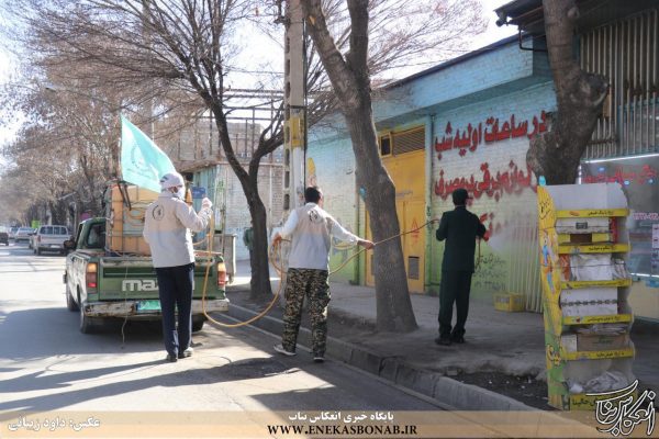 به گزارش انعکاس بناب، صبح امروز با توجه به افزایش شیوع بیماری کرونا در سطح شهرستان سپاه بناب با همکاری تمامی پایگاه های بسیج شهرستان، شهرداری و سایر ارگان ها در حرکتی خودجوش با تمامی امکانات خود وارد جنگ مستقیم با ویروس کرونا شده و طی برنامه ای کار گند زدائی و ضدعفونی کردن تمامی سطح شهرستان را آغاز کردند.