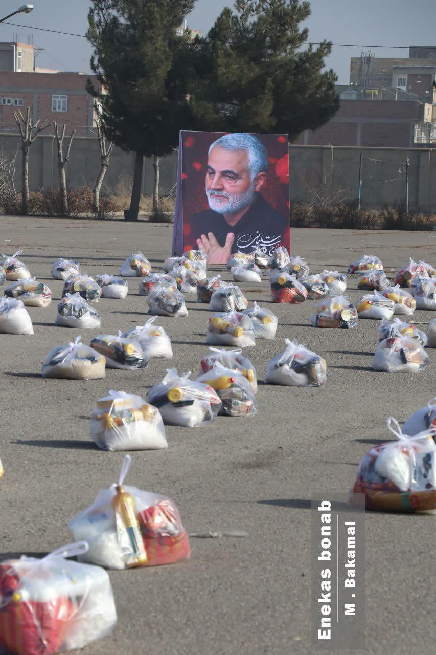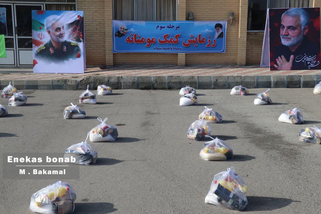 همزمان با سالگرد شهادت شهید حاج قاسم سلیمانی سپاه ناحیه بناب به کمک خیرین شهرستان 500 بسته غذایی هر کدام به ارزش 2 میلیون ریال به نیازمندان اهدا کردند.