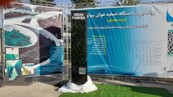 همچنین دستگاه تصفیه هوا با جلبک که نخستین بار در تبریز طراحی و ساخته شده است رونمایی شد.