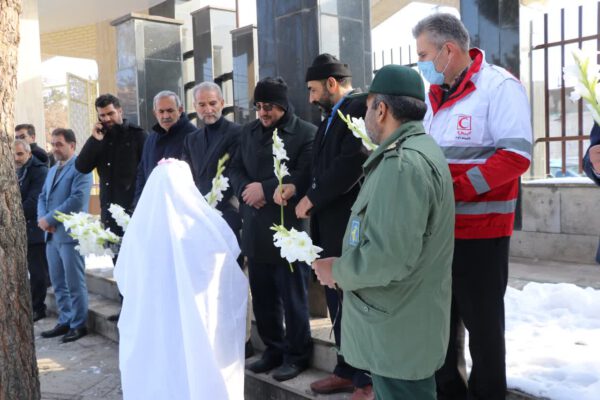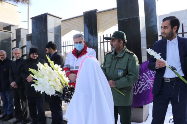 صبح امروز همزمان با سالروز وفات ام البنین(س) بسیجیان و بانوان بنابی به مقام شهیدان، مادران و همسران شهدا ادای احترام کردند.
