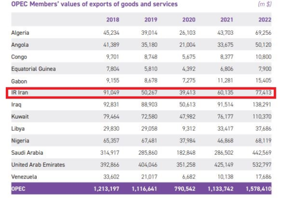 به این ترتیب ایران پنجمین صادرکننده کالا و خدمات در میان ۱۳ عضو اوپک به شمار میرود.