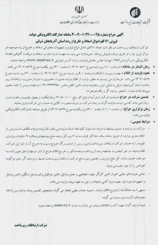 آگهی حراج ۷۱ قلم اموال اسقاط و خارج از رده شرکت ارتباطات زیر ساخت