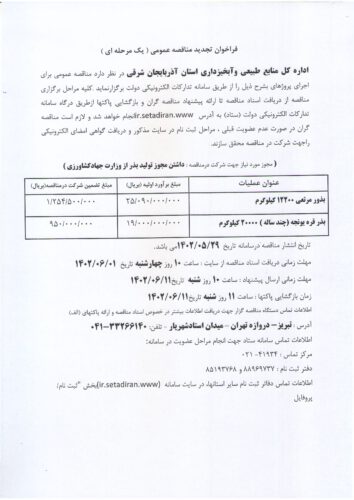 آگهی مناقصه عمومی اداره کل منابع طبیعی و آبخیزداری استان آذربایجان شرقی